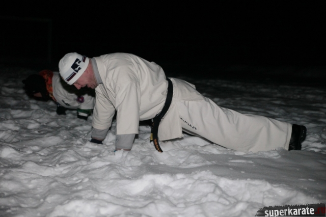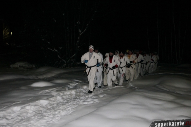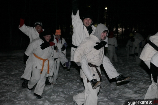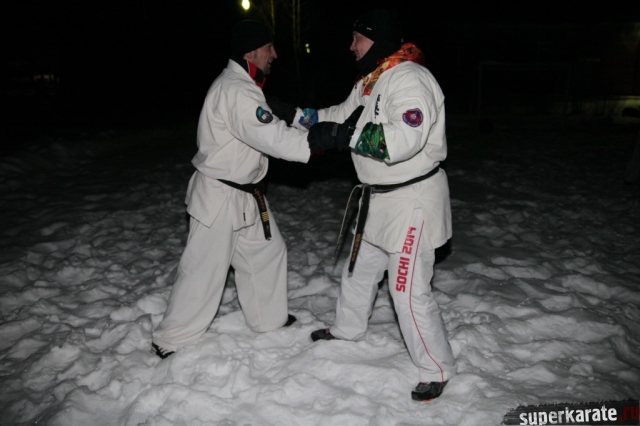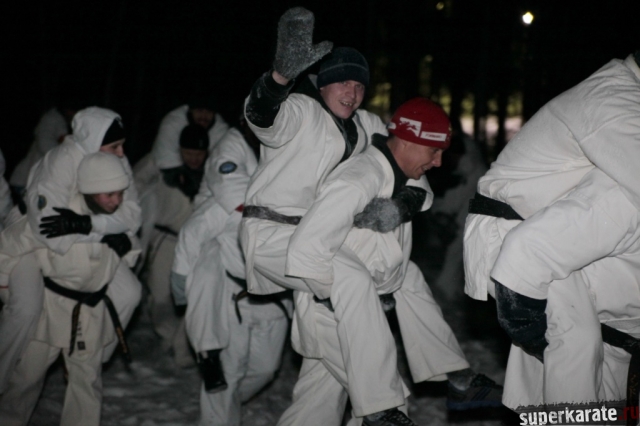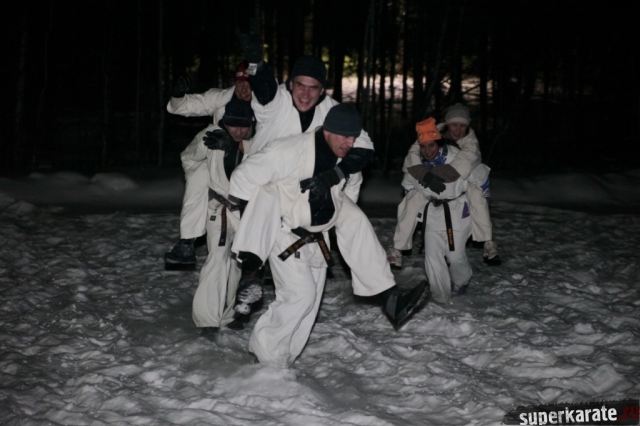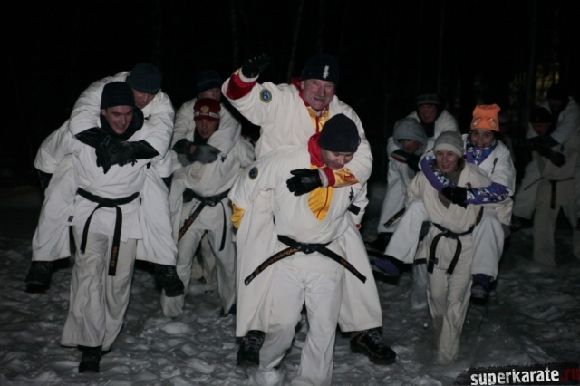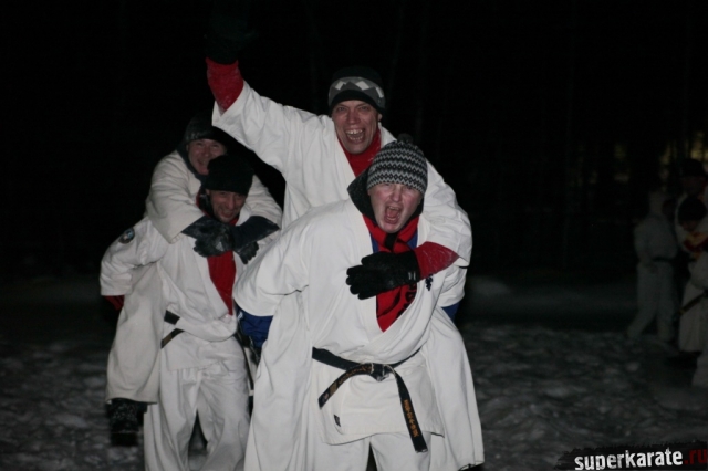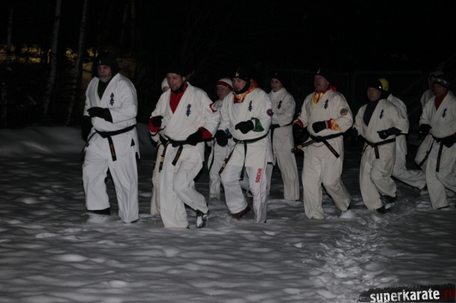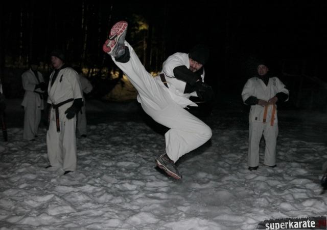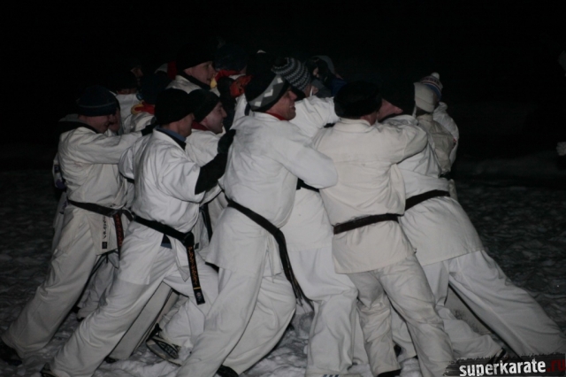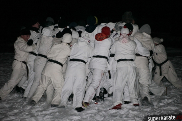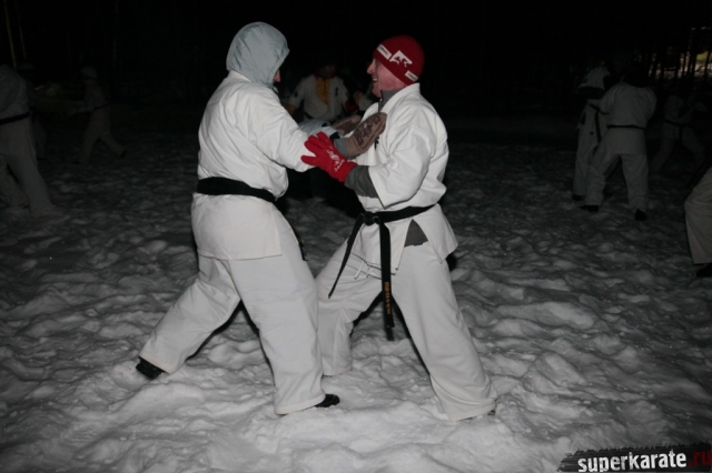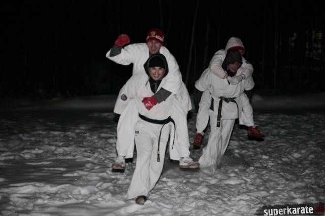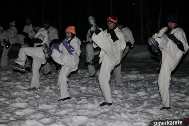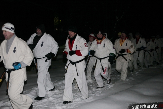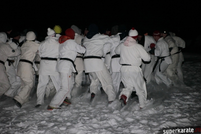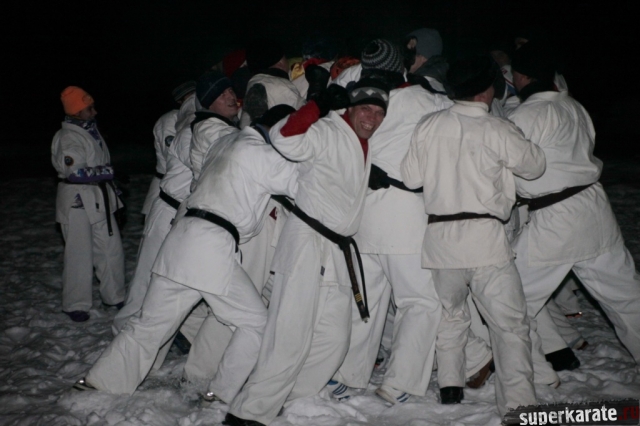 В ночь с 12 на 13 января традиционно прошла ночная тренировка под руководством Шихана Андрея Владимировича Бура. Яркая и заряжающая энергией тренировка с традиционными упражнениями кекусинкай в сочетании с Русскими забавами, такими как бой стенка на стенку, бег по сугробам, конный бой и другие поднимали настроение и заставляли веселиться и резвиться как малых детей умудренных опытом Шиханов и Сэнсэев.