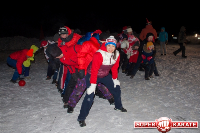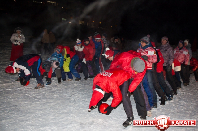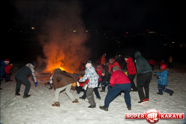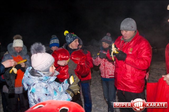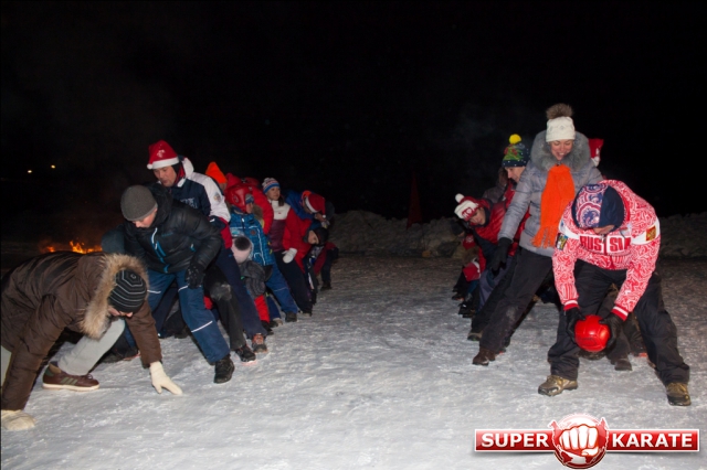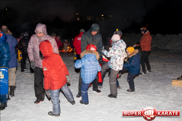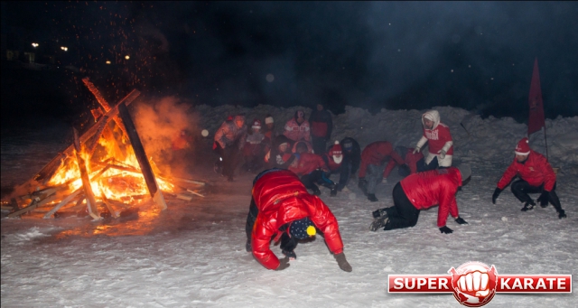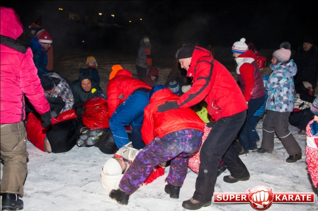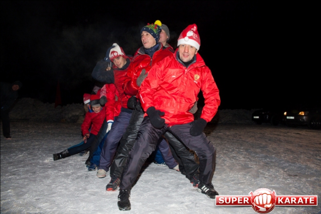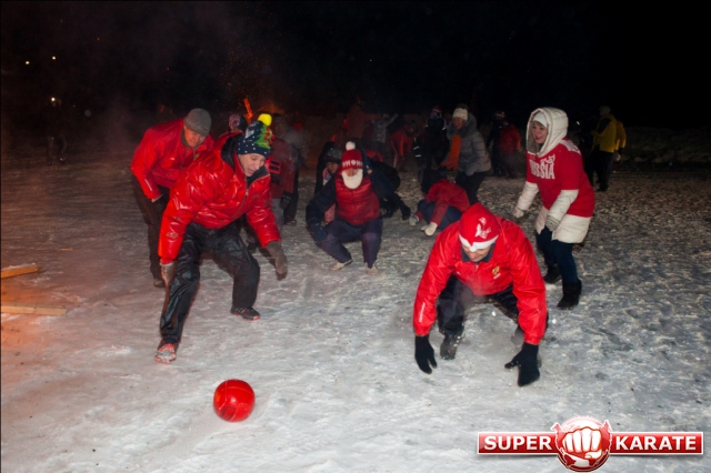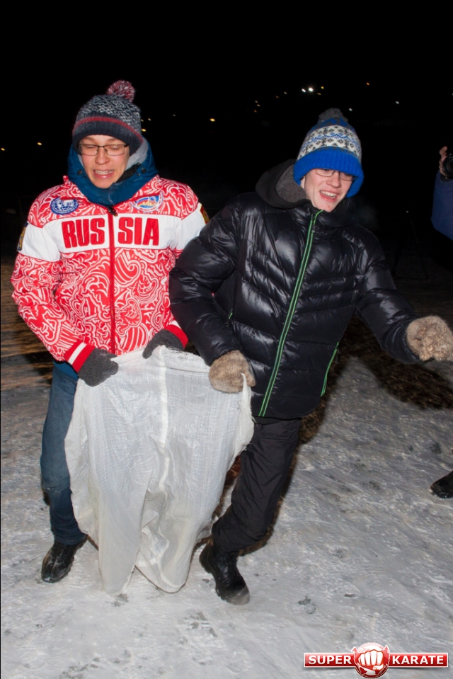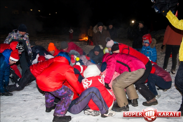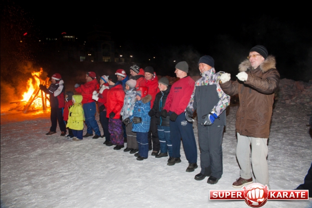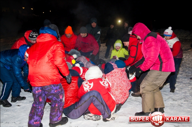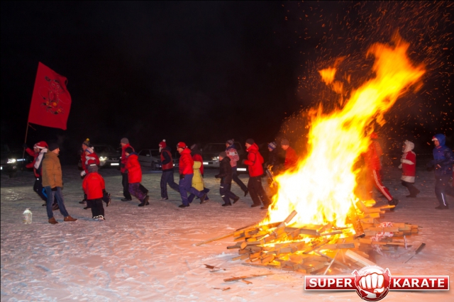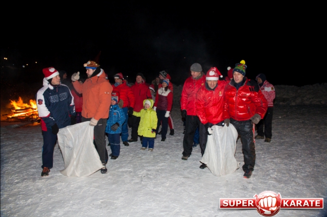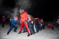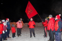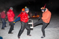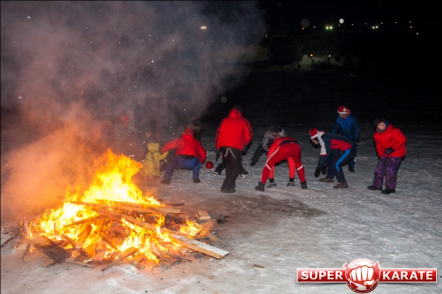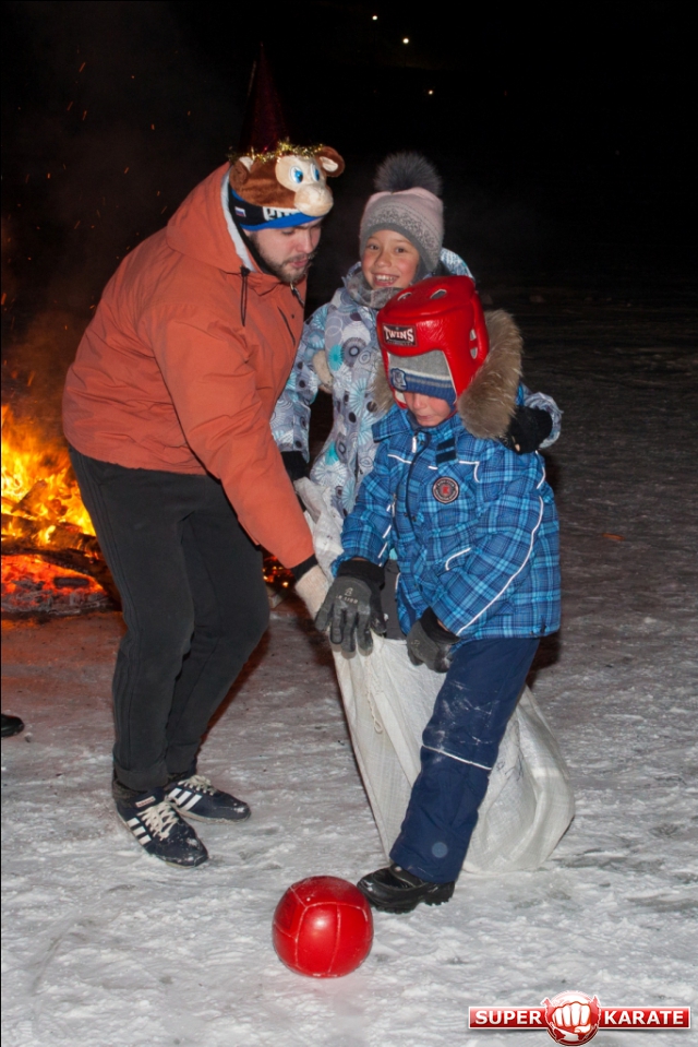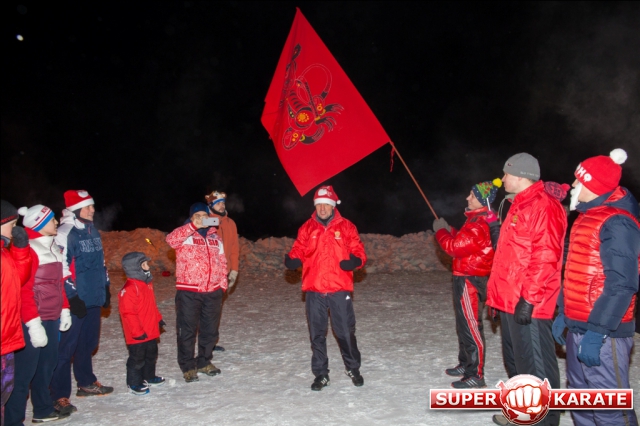 Знамя было торжественно установлено у одного из костров. Затем обезьяна, вернее Александр Субботин, стала объявлять программу состязаний. В итоге были проведены три мощных эстафеты. Несмотря на мороз, всем было жарко.