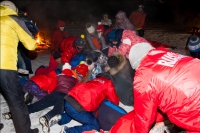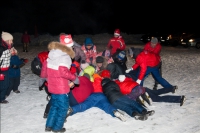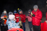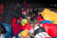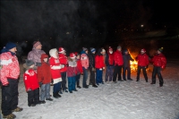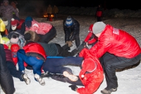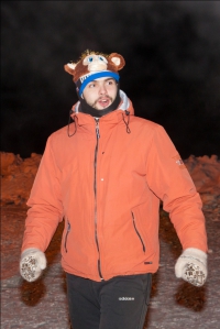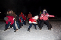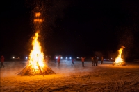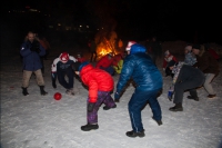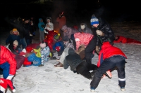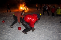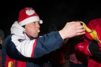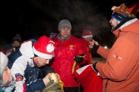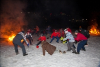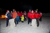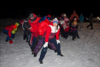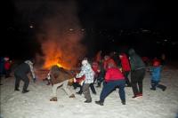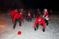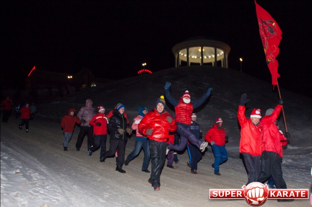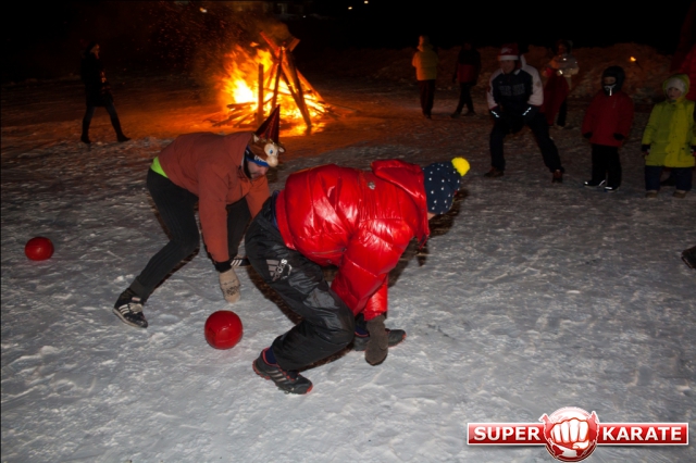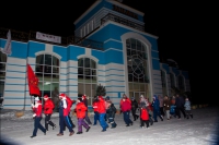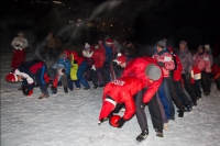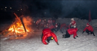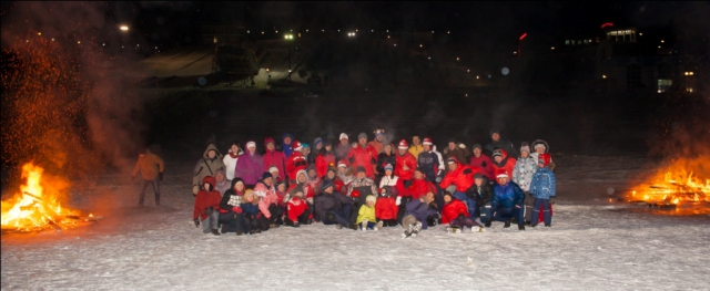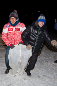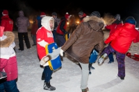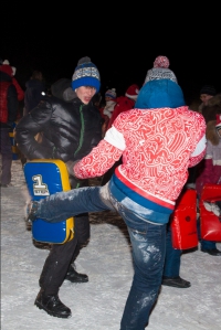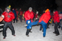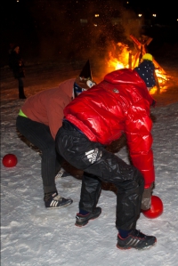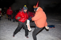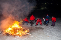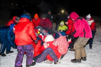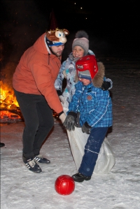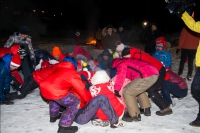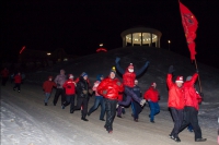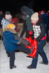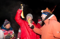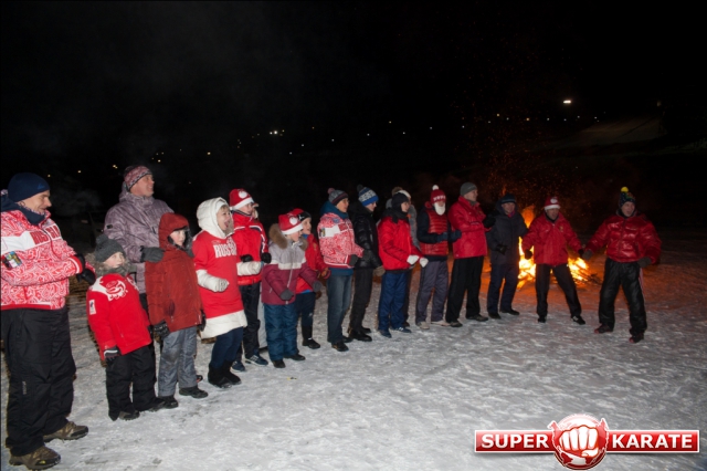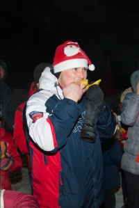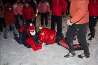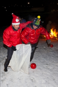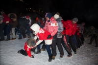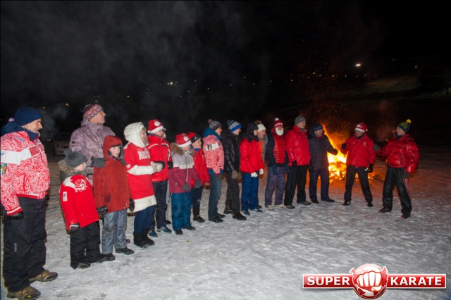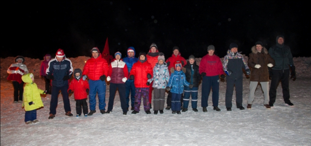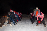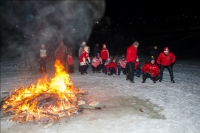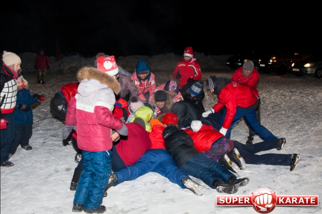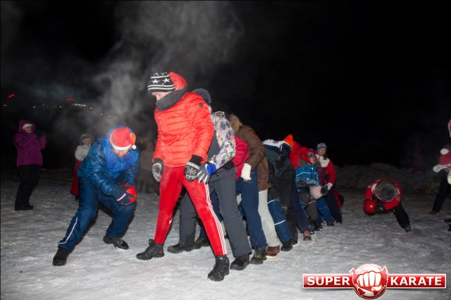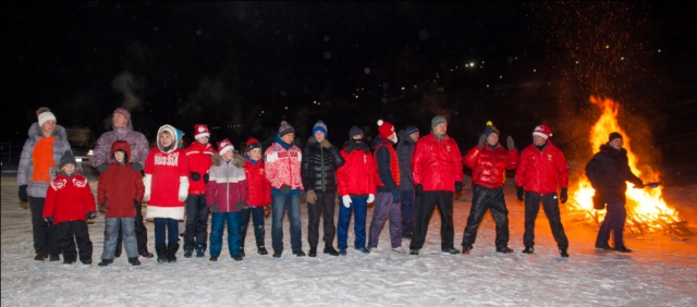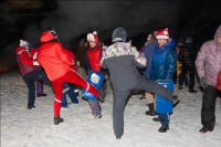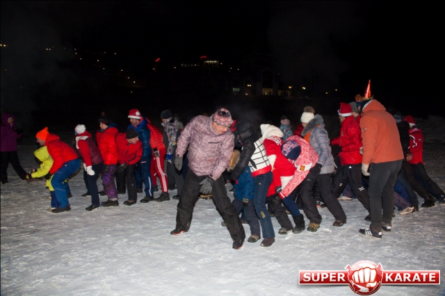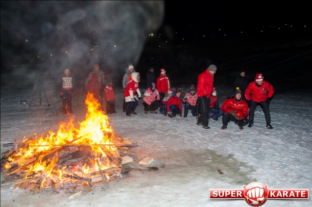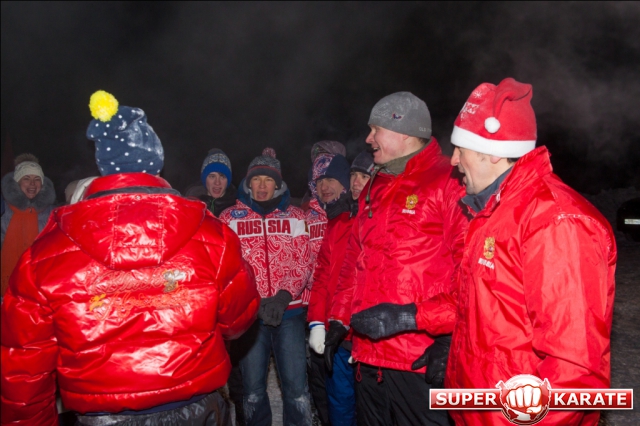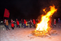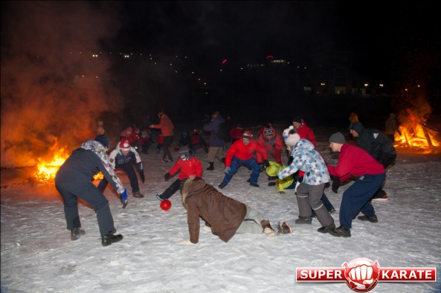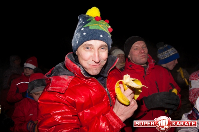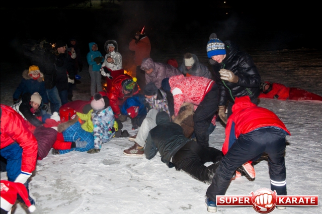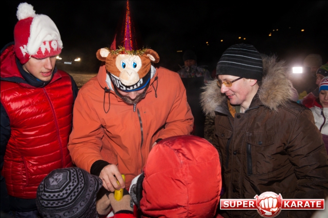 Знамя было торжественно установлено у одного из костров. Затем обезьяна, вернее Александр Субботин, стала объявлять программу состязаний. В итоге были проведены три мощных эстафеты. Несмотря на мороз, всем было жарко.