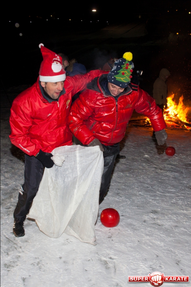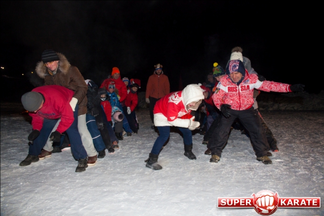 Понравилась Алексею и игра «Солнышко», которую активно продвигают в жизнь тайгеровцы. Суть ее такова: все «игроки» скрепляются руками и пока последнего не вытащат из зоны, игра не заканчивается. Капитаном одной команды был Станислав Винокуров, а второй — Алексей Горохов. Понятно, уступать никто не хотел, но наиболее выносливыми оказались гороховцы. Победителям вручались бананы (не забывайте, кто символ года!) со спортивными пожеланиями.