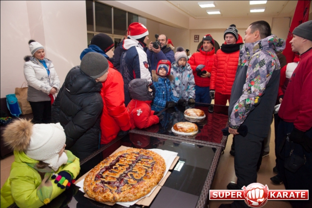 После завершения официальной части все участники отправились в теплое помещение, за что отдельное спасибо администрации туристического комплекса «Заимка». И началось чаепитие (чай, понятно, был китайским) с вкусными пирогами. Самый большой пирог испекли родителей юных спортсменов.