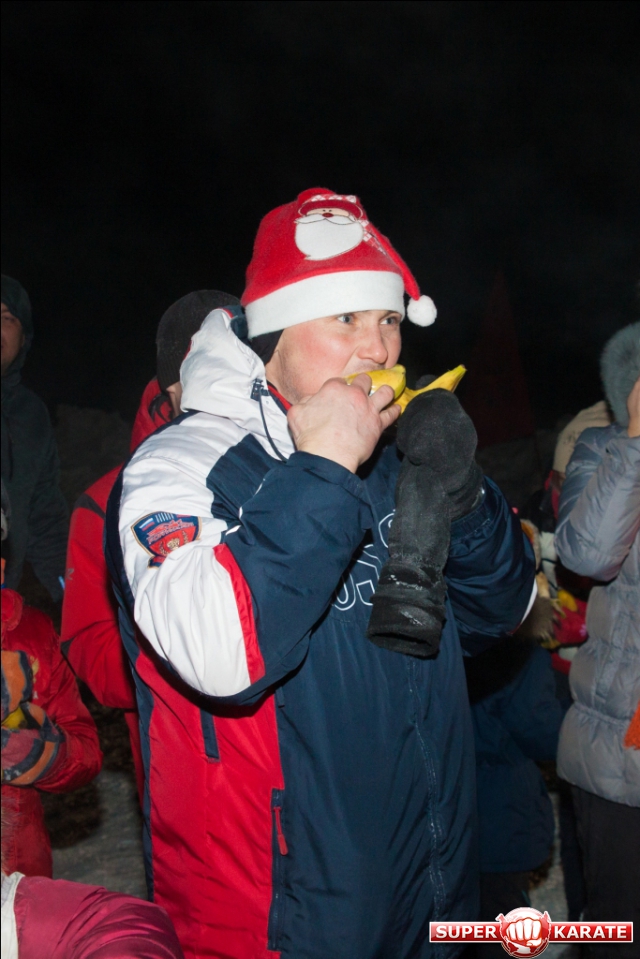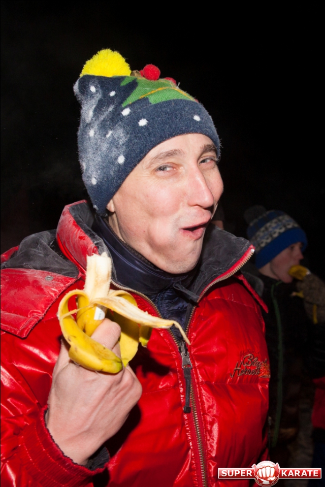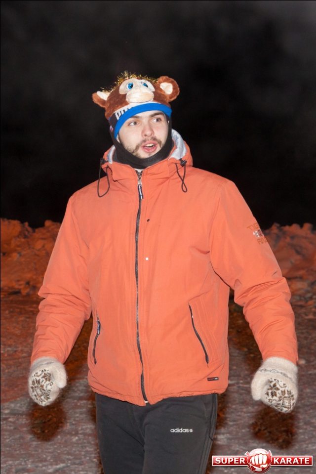 А началось все по традиции с кросса. Решено было взять штурмом крутую сопку. Сказано — сделано. Бежали с флагом, на котором была изображена красная обезьяна. Финишировали участники на льду Амурской протоки. Еще до начала мероприятия на этом месте организаторы разожгли два поистине пионерских костра. Здесь «бегунов» встретила… обезьяна. Вернее, инструктор клуба Александр Субботин в маске обезьяны. К слову, Саше не привыкать к таким перевоплощениям. Совсем недавно он прекрасно справился с ролью Деда Мороза.