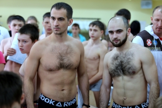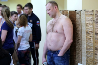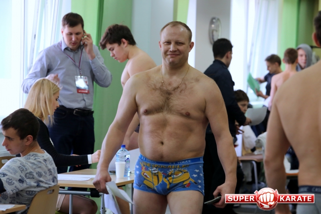 Так как взвешивание на мандатной комиссии учитывается при вынесении решения в равном поединке, то народ на мандатной максимально облегчал форму одежды.