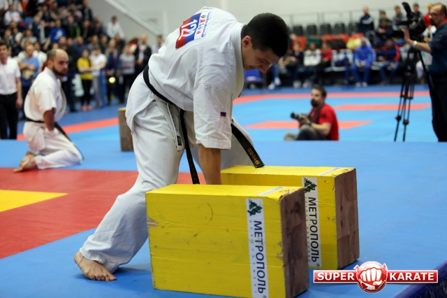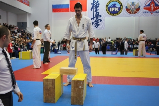На Чемпионате России по кекусинкай (IFK) перед четвертьфинальными поединками проводились соревнования по тамэшивари.
