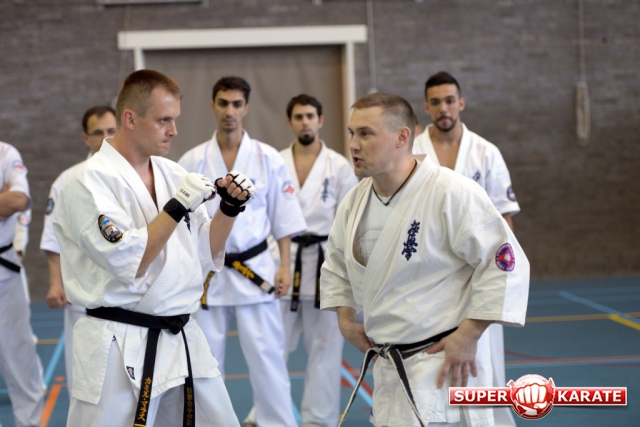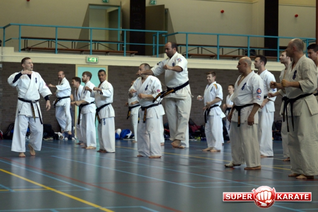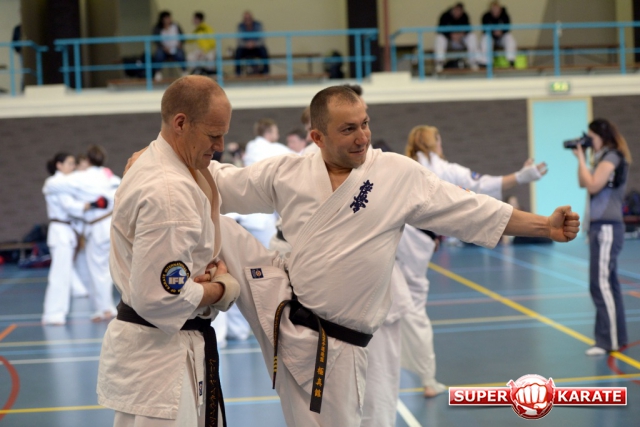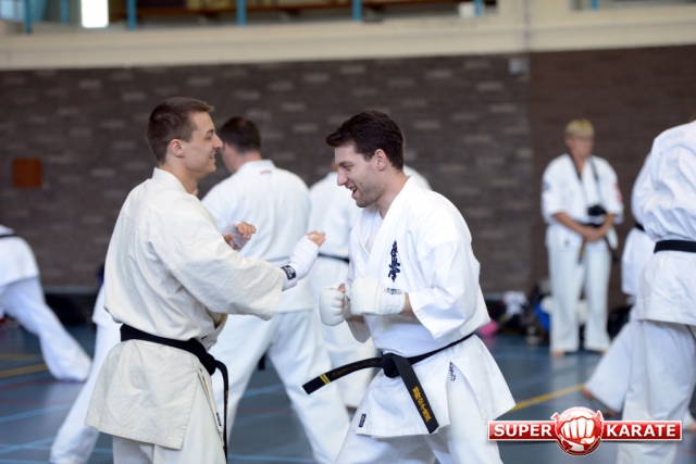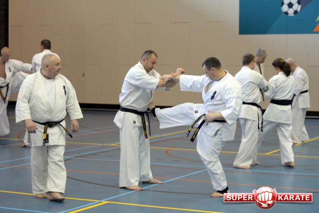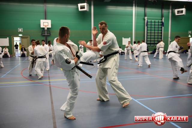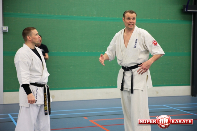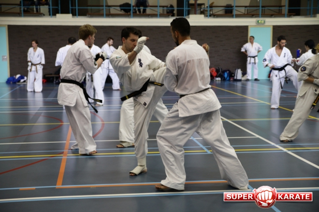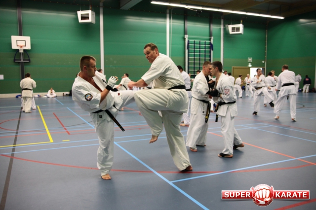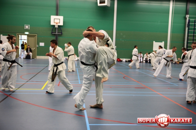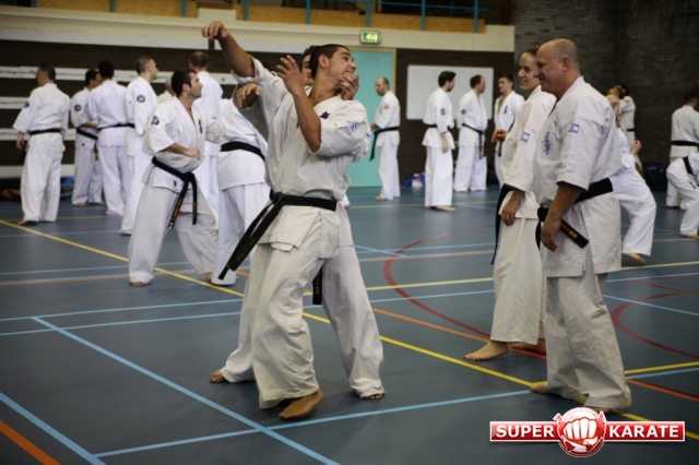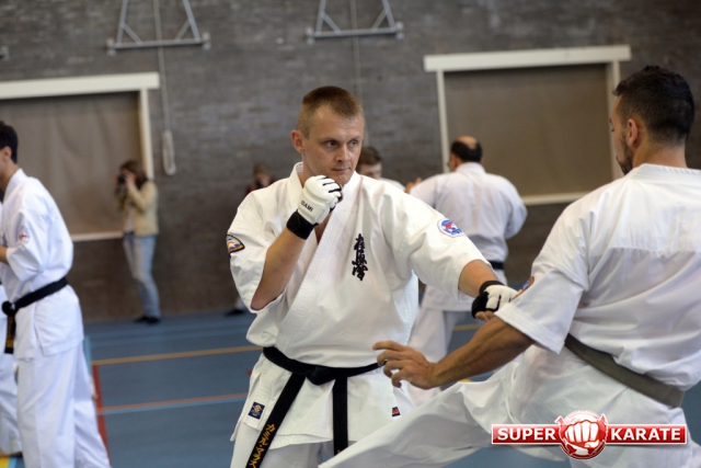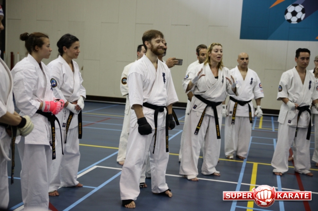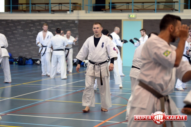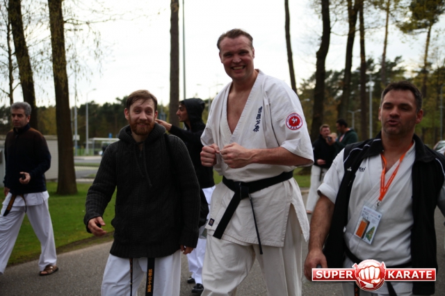 В моей обязанности, как инструктора, было проведение тренировок по кумитэ с группой черных и отдельно группой не черных поясов. Вот с цветными поясами случился сюрприз. Мало того, что там не было русскоговорящих участников, так там и англоговорящих не нашлось. Тут мне сильно помогли Сэнсэй Стэфано Блокланд и Руэл Нордман, они переводили с моего английского на голландский язык - огромное им спасибо. И мы прекрасно друг друга понимали.