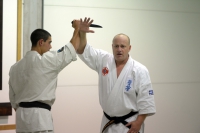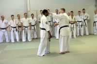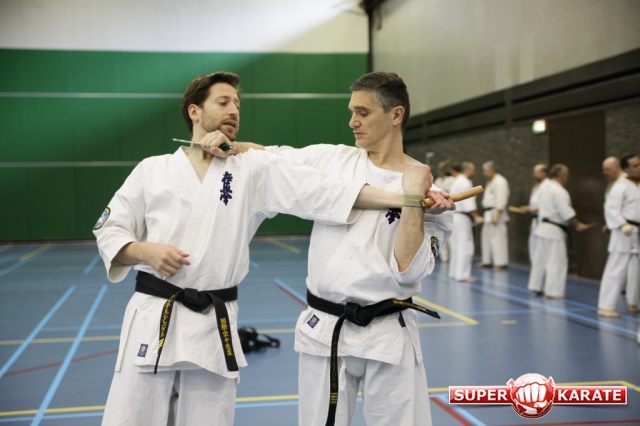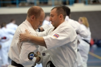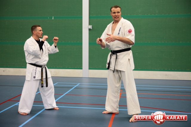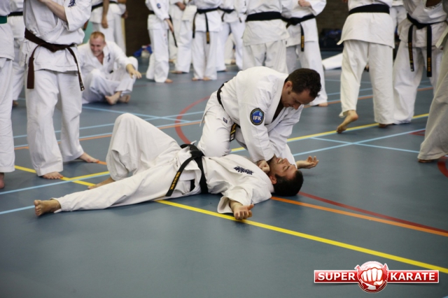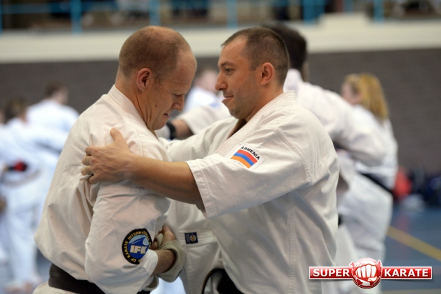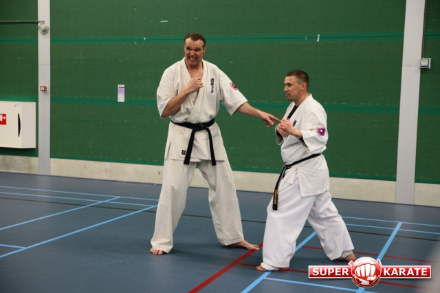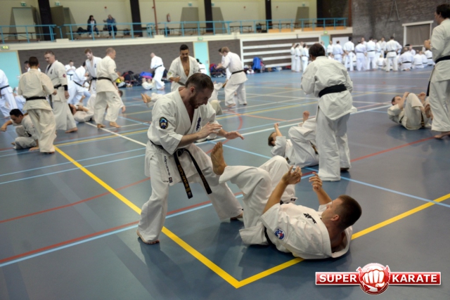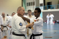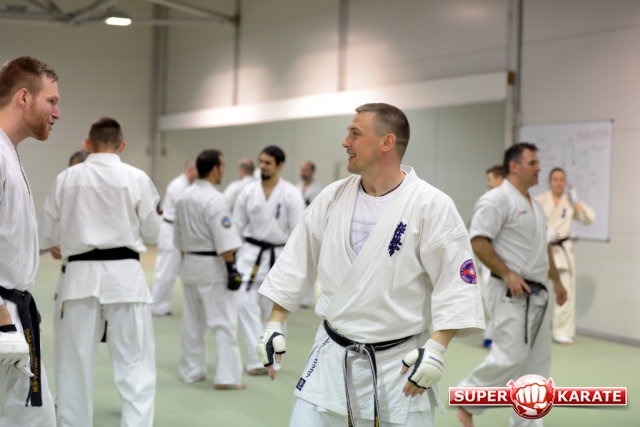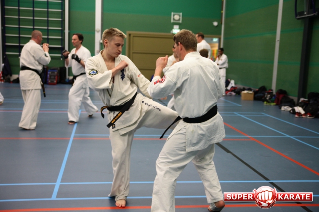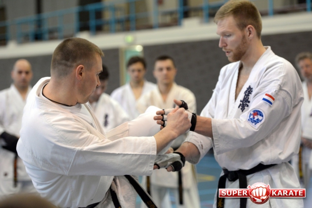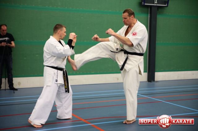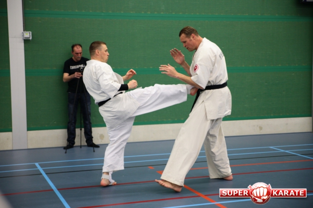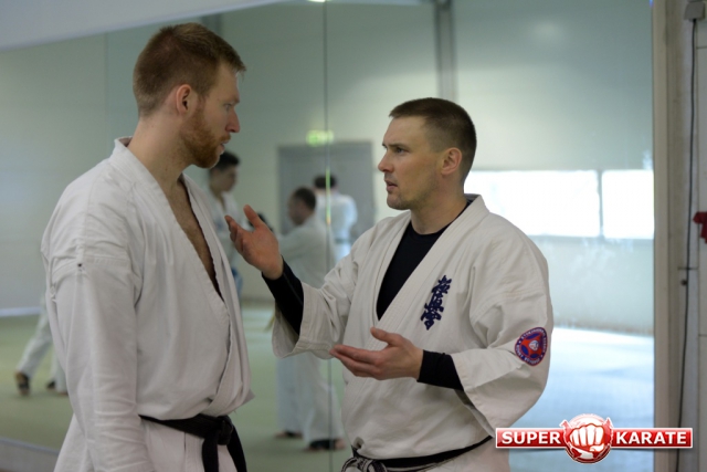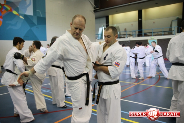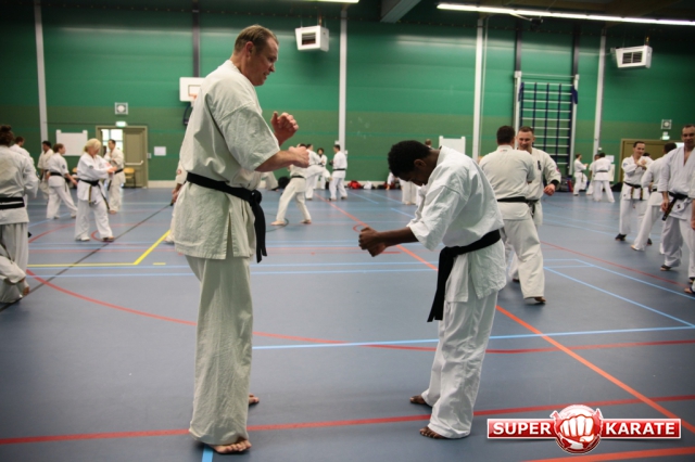 В моей обязанности, как инструктора, было проведение тренировок по кумитэ с группой черных и отдельно группой не черных поясов. Вот с цветными поясами случился сюрприз. Мало того, что там не было русскоговорящих участников, так там и англоговорящих не нашлось. Тут мне сильно помогли Сэнсэй Стэфано Блокланд и Руэл Нордман, они переводили с моего английского на голландский язык - огромное им спасибо. И мы прекрасно друг друга понимали.