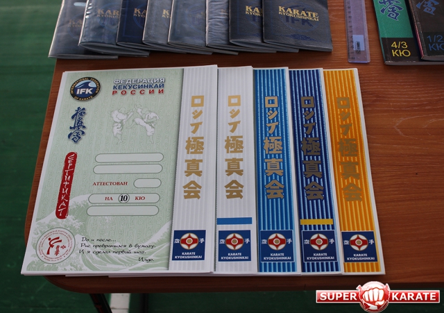 На второй день сборов прошёл экзамен на ученические пояса. 34 спортсмена успешно прошли аттестацию и заслуженно получили документы подтверждающие новое достижение.