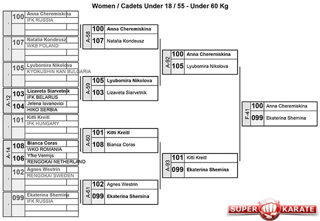 Women / Cadets Under 18 / 55 - Under 60 Kg