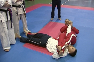 На встрече присутствовали и двукратные чемпионы мира по киокусинкай Евгений Мамро и Марсель Мансуров. Общий язык нашли быстро и еще быстрее от слов перешли к делу. Оформивший в Сочи пятое мировое золото Альсим Черноскулов, взяв в качестве ученика Евгения Мамро, показал бросок через бедро и болевой прием. Каратист отлично усвоил урок, что и продемонстрировал на своем учителе.