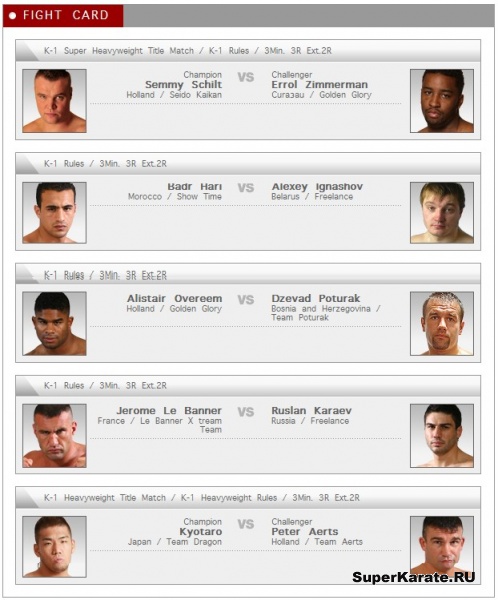 Файт кард K-1 World Grand Prix in Yokohama 3 апреля