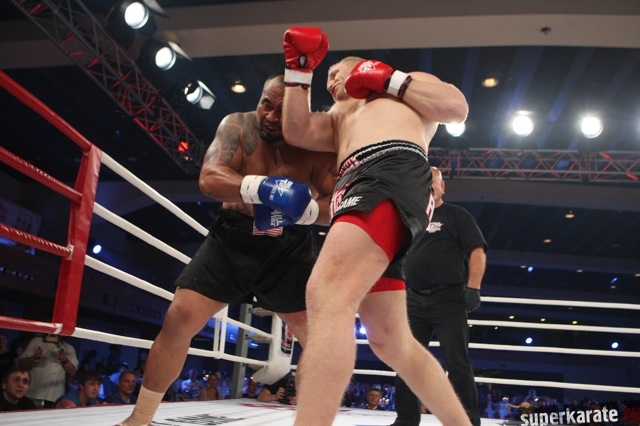 Затем настала пора самого ожидаемого российскими болельщиками поединка по правилам К-1. Сергей Харитонов (Россия) вышел против Майти Мо (США). И раньше имевший неплохую боксерскую подготовку, Сергей Харитонов, в последнее время еще и попрактиковавшийся в соревнованиях по боксу, начисто переиграл своего оппонента, славящегося сокрушительным ударом справа, но не обладающего хорошей техникой ударов ногами. В итоге в конце второй минуты первого раунда Харитонов поймал Майти Мо на мощнейший апперкот, которым отправил американца в нокаут.