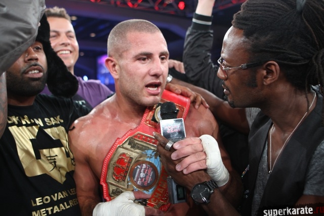 Настала пора заключительного поединка турнира. В финале серии GLORY 2010-2011 гг. в супертяжелом весе по правилам К-1 стретились Гохан Саки (Турция) и Брис Гуидон (Франция). На мой взгляд, французу явно не хватает атлетизма. Чем и воспользовался Саки, серьезно набравший в мышечной массе за последнее время. Уверенно переиграв соперника все три раунда, в первую очередь, на руках, и послав Гуидона в нокдаун во втором раунде, Саки победил единогласным решением судей, также завоевав приз в $150000.
