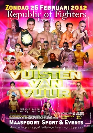 Несколько бойцов из лучших представителей голландского кикбоксинга примут участие в турнире "Vuisten Van Vuur", который состоится 26 февраля в Ден Бош. На ринг выйдут Робин ван Русмален, Фалдир Чахбари, Арут Григорян, Хишам Эль Гаоуи и другие.