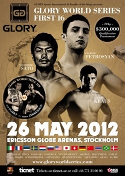 Мероприятие под названием Glory World Series First 16 состоится 26 мая в Стокгольме (Швеция). В продвижении турнира будет участвовать шведская промоутерская компания Rumble of the Kings.