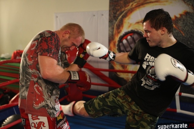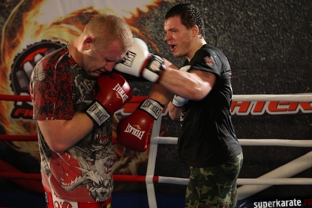 Известный российский боец Сергей Харитонов сейчас находится в Москве и готовится к своему следующему поединку, который должен состояться 26 мая в Стокгольме в рамках турнира Glory World Series. Вчера Сергей Харитонов тренировался в Московском центре боевых искусств и провел серию спаррингов с различными партнерами. Смотрите подборку фотографий этого действа.