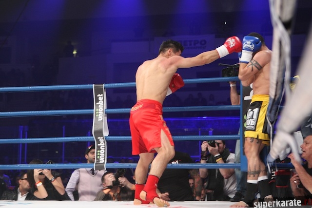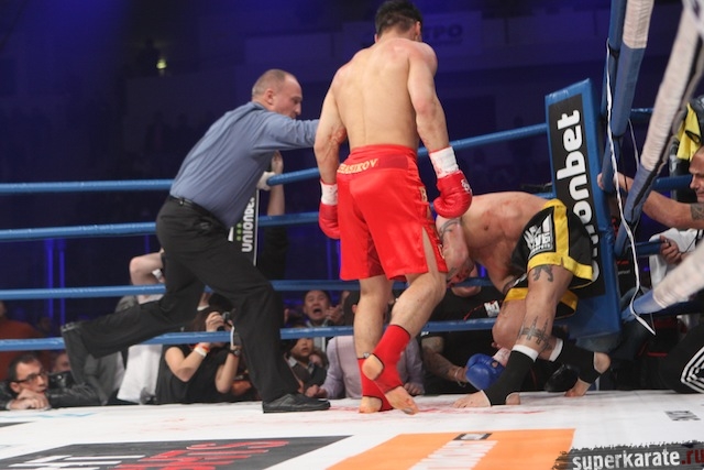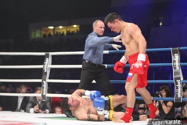 Поэтому от неспешного прессинга Бату перешел к самым активным действиям, насаживая Гаго на колено, и мощно пробивая руками. Сначала левый боковой отправил Драго на настил ринга. Но он сумел подняться и продолжить бой. Однако Бату соперника не отпустил, последовавший через несколько секунд правый боковой поставил жирную точку в этом бою.