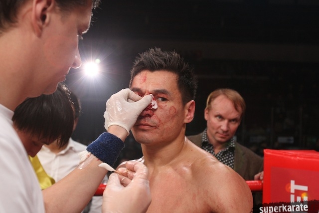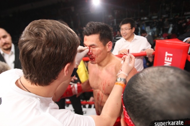 Видя, что кровотечение пока не сильно мешает спортсмену, рефери разрешил продолжить бой. Однако Бату Хасиков и его команда отчетливо поняли, что полученная травма может в дальнейшем усугубиться, и Бату может быть снят с боя врачом.