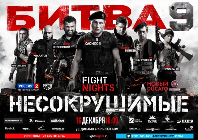 Определился состав участников итогового турнира года компании FIGHT NIGHTS "Битва под Москвой 9", который состоится 16 декабря в Москве на арене спорткомплекса "Динамо" в Крылатском. В рамках турнира запланировано 10 поединков по правилам ММА и K-1. Особенностью данного турнира станет сильнейший файткард, который был когда-либо представлен в турнирах, организованных на территории России.