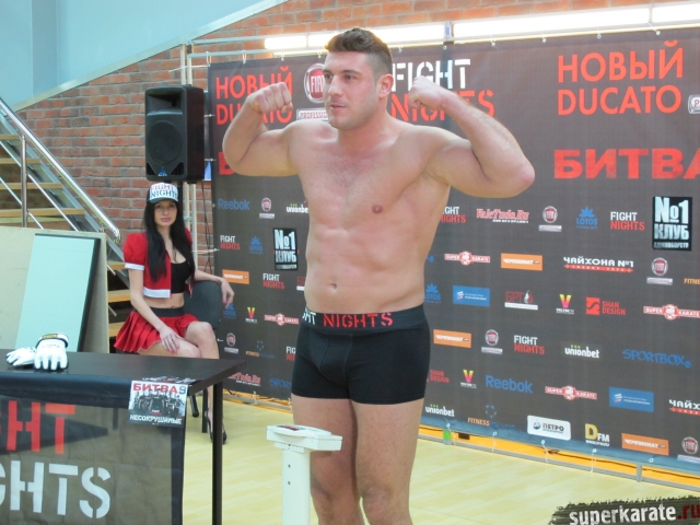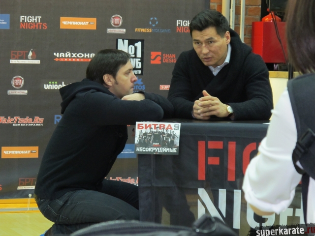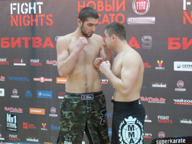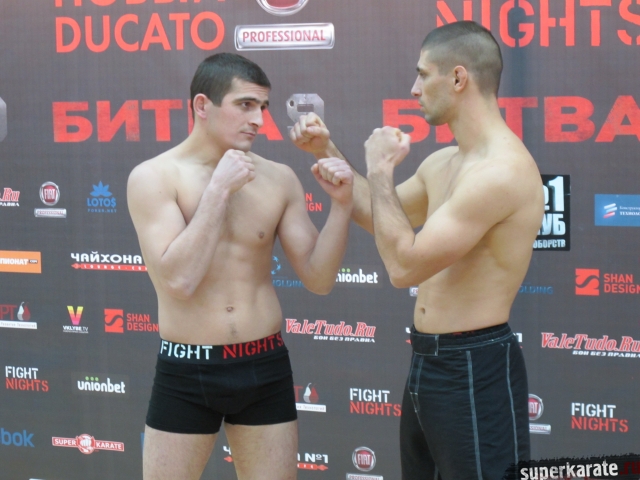 Взвешиванием руководил генеральный продюсер Файт Найтс Камил Гаджиев, пресс-конференцию вел Сангаджи Тарбаев, а главным секретарем официального взвешивания выступил... чемпион мира по кикбоксингу, сенатор Бату Хасиков.