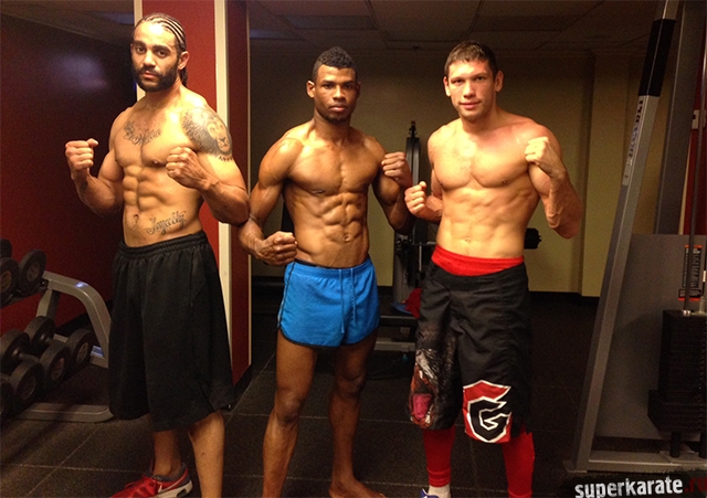 Сегодня прилетели грузинский боец Давид Кирия и его тренер Бачуки Парцвания, кстати Парцвания - сэнсей, он возглавляет грузинскую федерацию Ашихара каратэ. Давиду предстоит бой против Муртела Гроенхарта - последнего Чемпиона К-1 MAX.