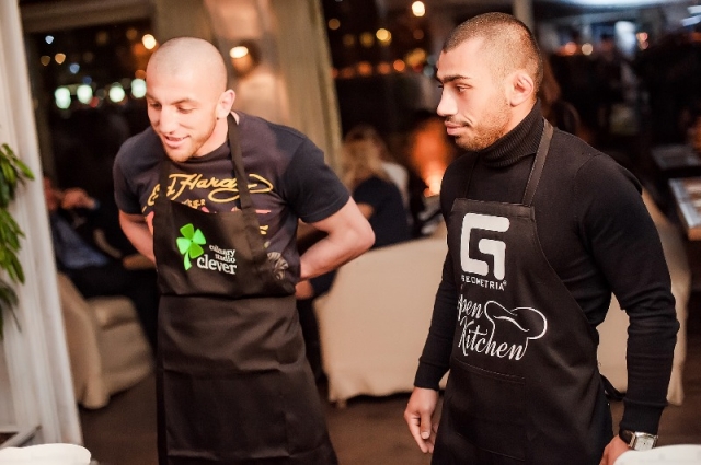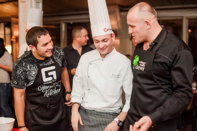 Звезда кикбоксинга Джабар "Чингизхан" Аскеров и боец с нокаутирующим ударом тяжеловес Шамиль Абдурахимов встретились со своими соперниками немцем Марко Грохом и англичанином Нейлом "Голиафом" Гроувом на кухне кулинарного live show Geometria Open Kitchen-5 "Большая