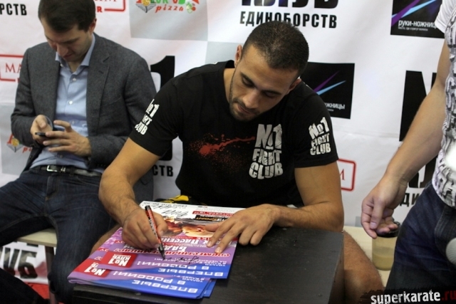 Далее в программе было общение с прессой, фото- и автограф-сессии. Бадр Хари устал, но честно отработал и эту часть семинара. Обаятельнейшая улыбка, уверенность в себе и готовность к небанальным ответам на любые вопросы – во время интервью было весело всем навострившим уши поклонникам бойца. Вот лишь часть вопросов и ответов, которые прозвучали в этот вечер.