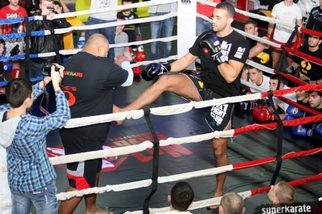 23 октября в Клубе Единоборств №1, как и было обещано, состоялся семинар знаменитого голландского кикбоксера Бадра Хари. Боец, который пробудет в Москве в общей сложности 3 недели, прибыл не один, а со своей командой во главе с легендарным наставником Майком Пассенье. К звездным «семинаристам» нагрянули не менее звездные гости – Лечи Курбанов, Макс Дедик и Сахак Парпарян.Мастер-класс начался чуть позже запланированного по вполне уважительным причинам – московские пробки и… хороший аппетит Бадра Хари. Часовой семинар пролетел незаметно, Бадр был настроен на серьезную работу и того же требовал от участников мероприятия. Уверенный в себе, с отличным чувством юмора, ироничный, но при этом не чуждый самоиронии – кикбоксер и в реальной жизни производит впечатление цельной личности и профессионала высокого уровня.