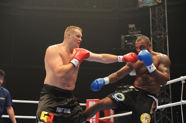 Свой супербой выиграл "голденглоровец" Сергей Харитонов, очень уверенно заставив рефери прекратить избиение японского бойца Сато.