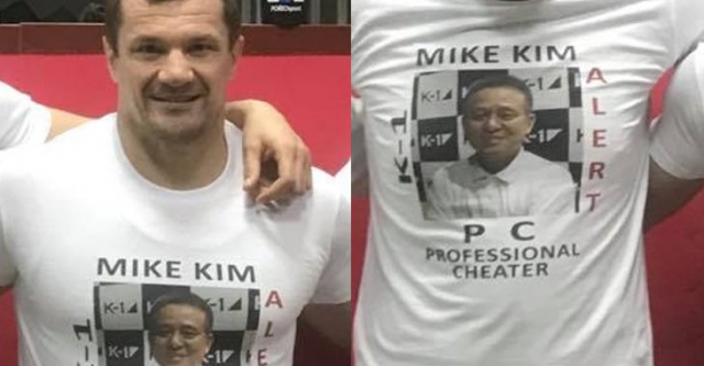 «Это прекрасное Лицо принадлежит майку Киму, владельцу легендарной организации К-1. Я написал о нем два месяца назад и сказал, что он мошенник, который никогда не платил бойцам, участвовавшим в K-1 Grand Prix 2013. Он позвонил на следующий день и попросил меня перестать писать, и он заплатит. Конечно, с тех пор он не отвечает на телефонные звонки и сообщения, и я пообещал ему, что не забуду его, и что я проинформирую поклонников К-1, бойцов и его деловых партнеров о том, какой он человек. Панки и мошенники вроде него этого заслуживают. Я напечатал эти футболки, как обещал, чтобы люди запомнили его имя и его очаровательное лицо. Это просто первая футболка, другие будут представлены позже, каждый раз с соответствующим баннером. Пожалуйста, поделитесь, потому что такие люди, как Майк Ким, заслуживают того, чтобы каждый узнал, какой он мошенник. Когда он может украсть у бойцов, которые сражались за него, тогда он может, и он будет красть у кого угодно». – заявил Кро Коп через свой официальный Facebook