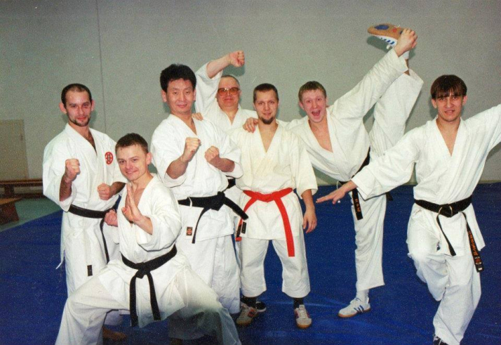 Андрей Александров: «На второй год занятий сменился наставник, и начали приходить разные другие тренеры. Даже не тренеры, приходили ребята чуть постарше и тренировали нас. А потом, на втором году университета, сокурсники попросили меня “Слушай, секцию каратэ нам посещать довольно-таки накладно, а давай ты нас будешь тренировать?” И так все совпало, что в мне в руки попало издание Масатоши Накаямы “Динамика каратэ”. В книге там очень хорошее шотокановское первоначальное обучение, где показаны все блоки и удары в фотографиях. Ну, недолго думая, и говорю, что могу организовать. Я уже долго занимался дзюдо и самбо, и имел примерное представление о тренировках. Вот так, не имея должной тренерской базы, я стал тренировать ребят. К концу шестого курса института я попал на экзамен к Тэцуо Сато. Также с собой я прихватил Славу Фоминского (он тогда у меня занимался), и мы одновременно сдавали экзамен и оба получили 3 кю. Даже не имея тренерской базы, я мог заложить основу своим ученикам, которые потом давали результат».