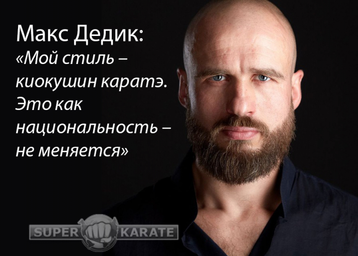 Макс Дедик: «Мой стиль – киокушин каратэ. Это как национальность – не меняется. Я презираю людей с ситуативной национальностью. Но это не значит, что я не могу говорить на английском, японском, испанском или португальском, понимать и уважать обычаи этих стран и даже становиться частью их традиции. Также я могу изучать бокс, кикбоксинг, муай-тай, бразильское джиу-джитсу или Окинава-каратэ и даже сетокан.