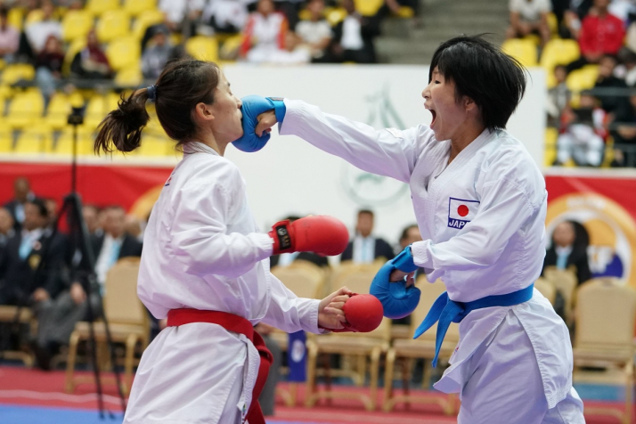 Далее, чтобы тренировать базовые техники в работе с партнером, были придуманы базовое кумитэ (кихон иппон кумитэ) и кумитэ для серии из трех ударов (санбон кумитэ). Потом появилось кумитэ «свободного удара», в котором вид атаки не определен заранее, (дзию иппон кумитэ) и отсюда родилось понятие «дзию-кумитэ» (свободное кумитэ). В результате этого процесса возникла идея соревнований, поединка по установленным правилам.