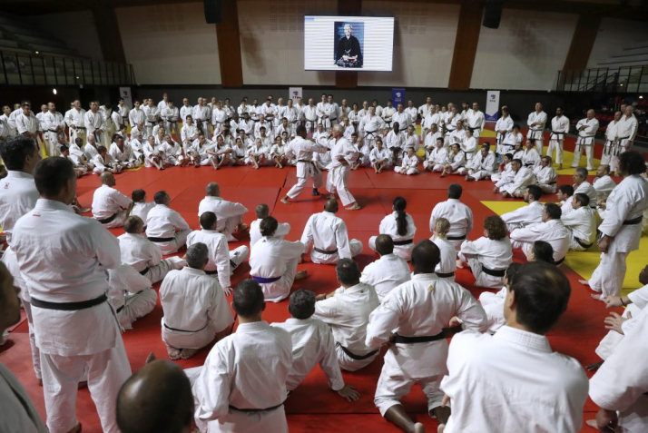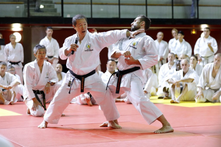 На Олимпийских играх в Токио я почувствовал, что то, что мы показали миру в этой уникальной возможности, не является самым лучшим изображением каратэ. Мы видели хороших спортсменов, но в реальном бою ты так не двигаешься. Посмотрите на двух адептов кендо: они не прыгают, стоят в естественной позе, и когда один из них видит, что соперник открылся, он рубит ударом. Это дух настоящего боя! Этот способ движения [в каратэ WKF], эти проявления радости или разочарования не являются сущностью каратэ с Окинавы. Мы также видели ценную технику, но ката должна быть текучей, как вода… Мы модифицировали форму и дух в соответствии с требованиями соревнований. Однако сколько практикующих мотивированы спортивными занятиями? Небольшой процент. Остальные занимаются каратэ в его традиционном измерении. Когда Дзигоро Кано, создатель дзюдо, встретил Гитина Фунакоси и призвал его приехать в Токио, в то время были другие специалисты по каратэ, которые были более впечатляющими и сильными, чем Фунакоси. Но не их любил Кано. Он увидел, что Гитин несет в себе достоинство и позицию, которые казались ему образцовыми. После Олимпиады я дал такой совет Японской федерации каратэ: вернитесь к духу Фунакоси!