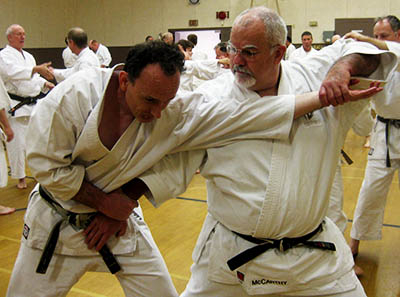 Действительно, зачастую вещи не таковы, какими кажутся. По аналогии с первым видом бункай: если это выглядит как блок, еще не значит, что это блок. Это может быть удушающий прием или что-то еще. Сторонники ура бункай вполне обоснованно утверждают, что каратэ – это смертельное искусство, что многие старинные приемы просто должны были быть замаскированы, защищены от посторонних глаз путем изменения их внешнего вида. Поэтому, хотя техника ката и может выглядеть крайне простой, она на самом деле может скрывать несколько замаскированных очень эффективных элементов.