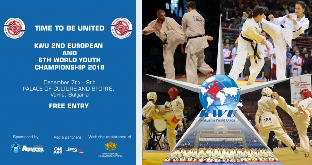 7-9 декабря 2018 года в Варне, Болгария, пройдут Чемпионат Европы KWU по киокушинкай среди мужчин, женщин и ветеранов и 6-е Первенство мира KWU среди спортсменов и спортсменок 12-17 лет. В соревнованиях примут участие около 750 бойцов из 32 стран.