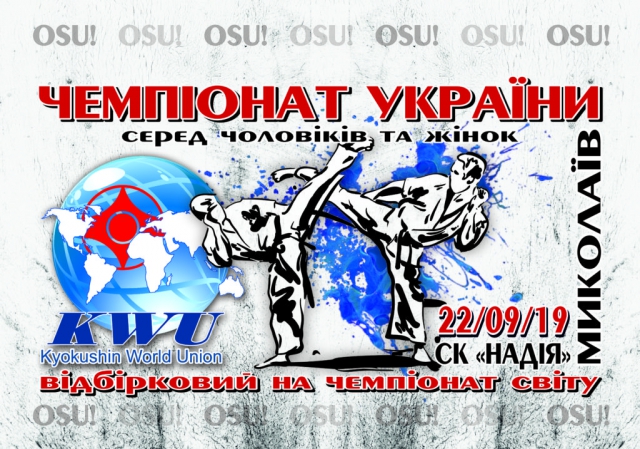 22 сентября в СК «Надежда», Николаев, Украина, состоится 1-ый чемпионат Украины по киокусинкай по версии KWU. Организатором турнира выступает Координационный совет KWU Украины.