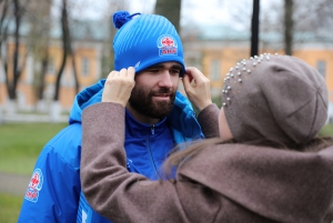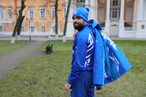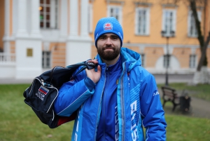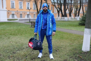 В комплект входят: шапка, спортивный костюм, теплая куртка, сумка, кроссовки и именная футболка.