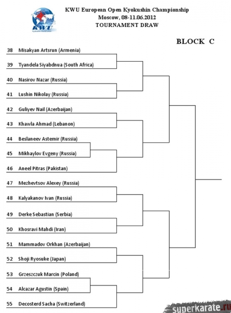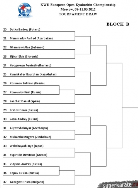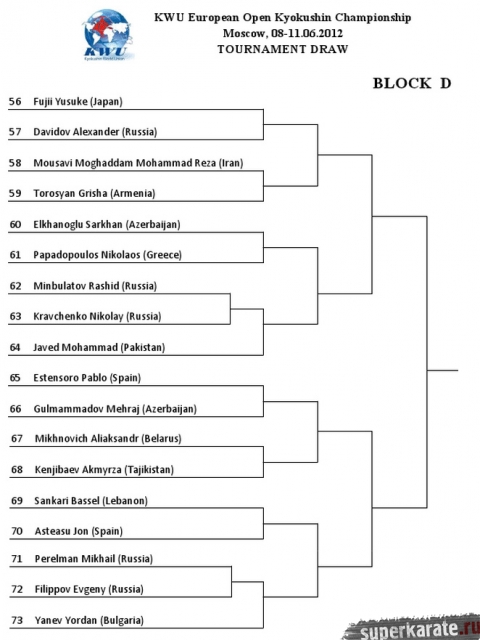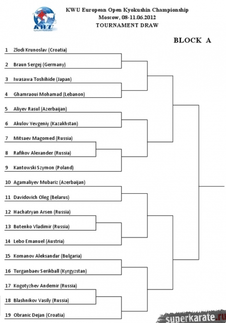 Публикуем результаты официальной жеребьевки участников Чемпионата Европы KWU. Представители российских федераций в первом же кругу встречаются между собой. Это делает первый же круг насыщенным интересными боями и дает шанс другим странам побороться за медали с прореженным составом российской сборной.