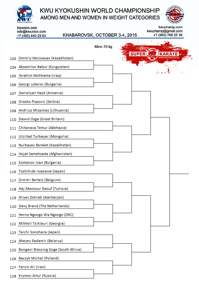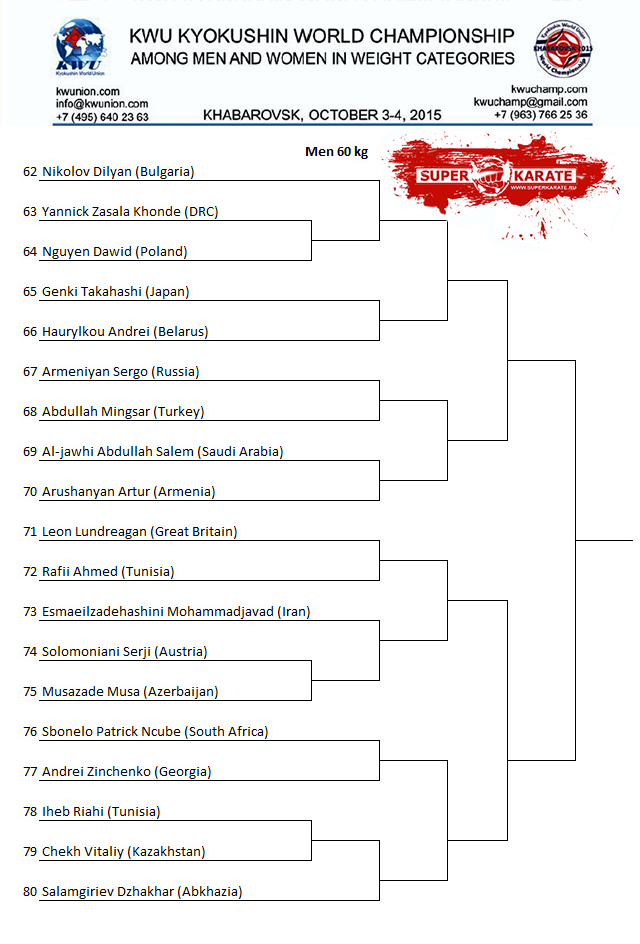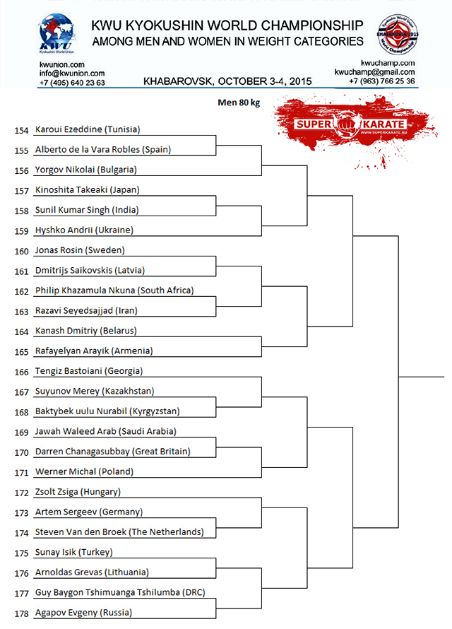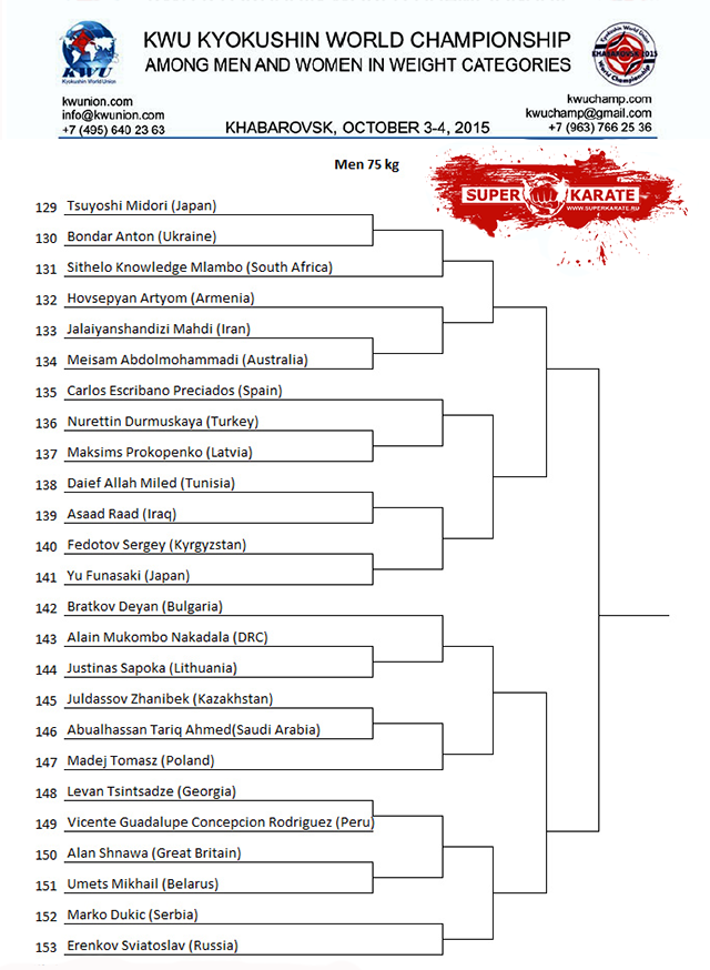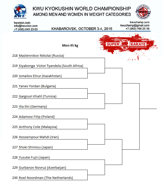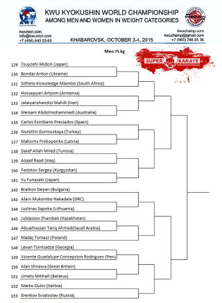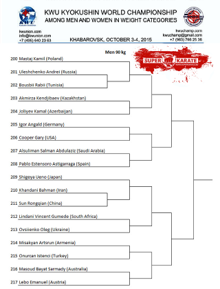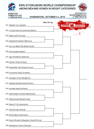 Внимание! Публикуем окончательные пули II Чемпионата мира KWU о киокусинкай. Эта редакция окончательная и утверждена всеми членами мандатной комиссии. Чемпионат мира начнется уже 3 октября 2015 года в Хабаровске и теперь окончательно понятно, кто точно прилетает в Хабаровск и верен спортивным принципам, а не конъюктуре или политическим амбициям.