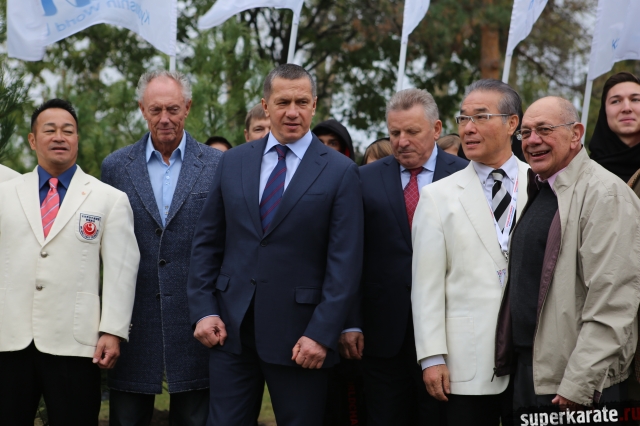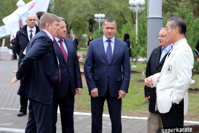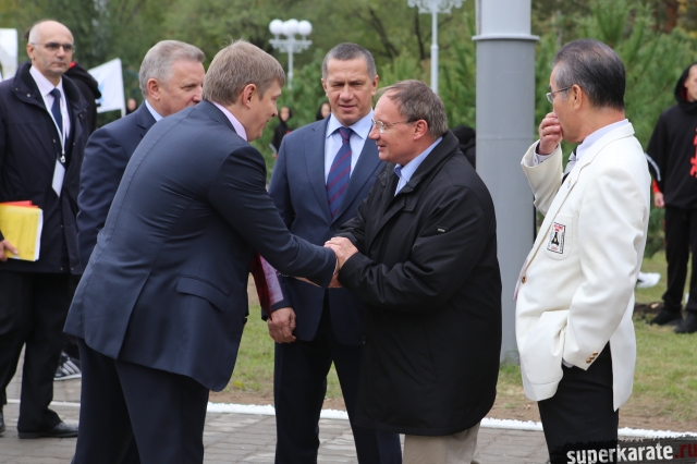В церемонии открытия Аллеи Киокусинкай принимали участие и другие члены иностранных делегаций. В том числе и представитель России WKO шихан Юрий Шабанов, легендарный боец шихан Норичика Цукамото, глава японского отделения международной организации KWF шихан Нориюки Танака и другие.
