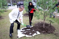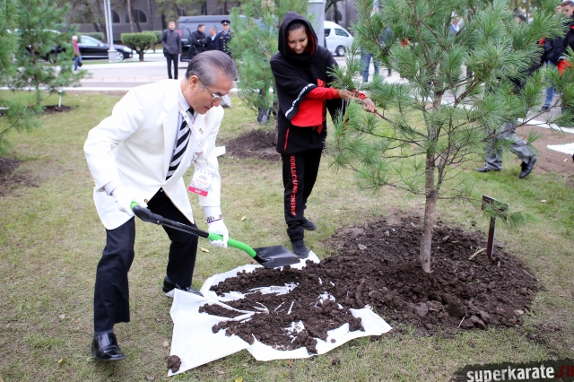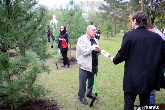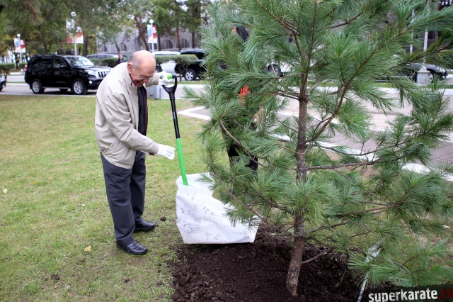 Одиннадцатый кедр сажали все вместе, он будет носить имя Сосая Масутацу Ояма.