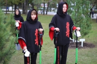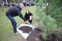 После окончания церемонии, чтобы деревья лучше прижились и росли ровными и высокими, специалисты сделали дополнительные крепления, с помощью которых стволы будут выровнены на специальных растяжках.