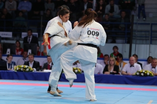 Этой паре из-за участия в торжественной части открытия чемпионата и прямого эфира пришлось выходить на татами через семь минут после парада. Но обе соперницы находились в равных условиях, для каждой спортсменки этот бой стал четвертым на чемпионате.