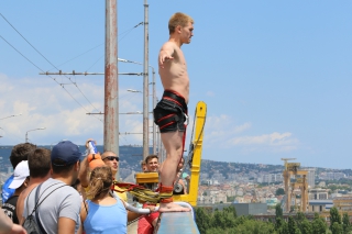 Семнадцать спортсменов и спортсменок из России на шести машинах выдвинулись на варнский мост, где запустили свои тела в пустоту и неизвестность, в желаниии перешагнуть не только перила 52 метрового моста, но и что-то в самих себе.