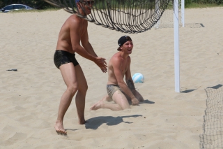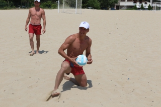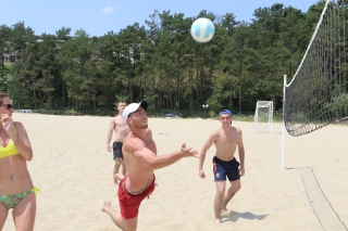 Те кому мало моря и хочется общения, играют в коллективные игры на свежем воздухе - футбол и волейбол.