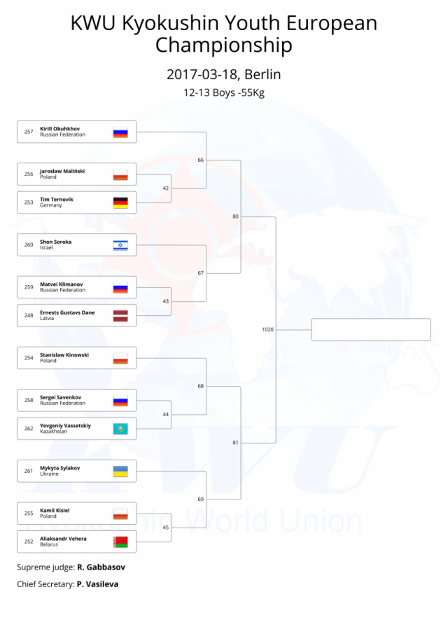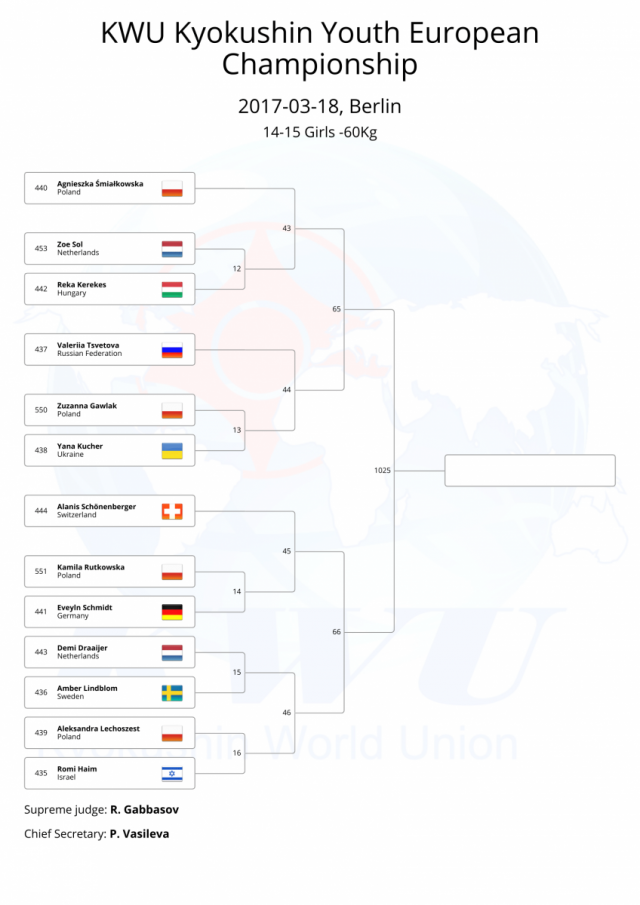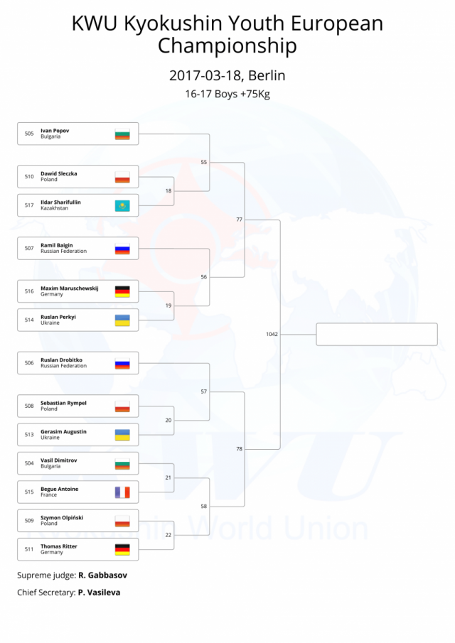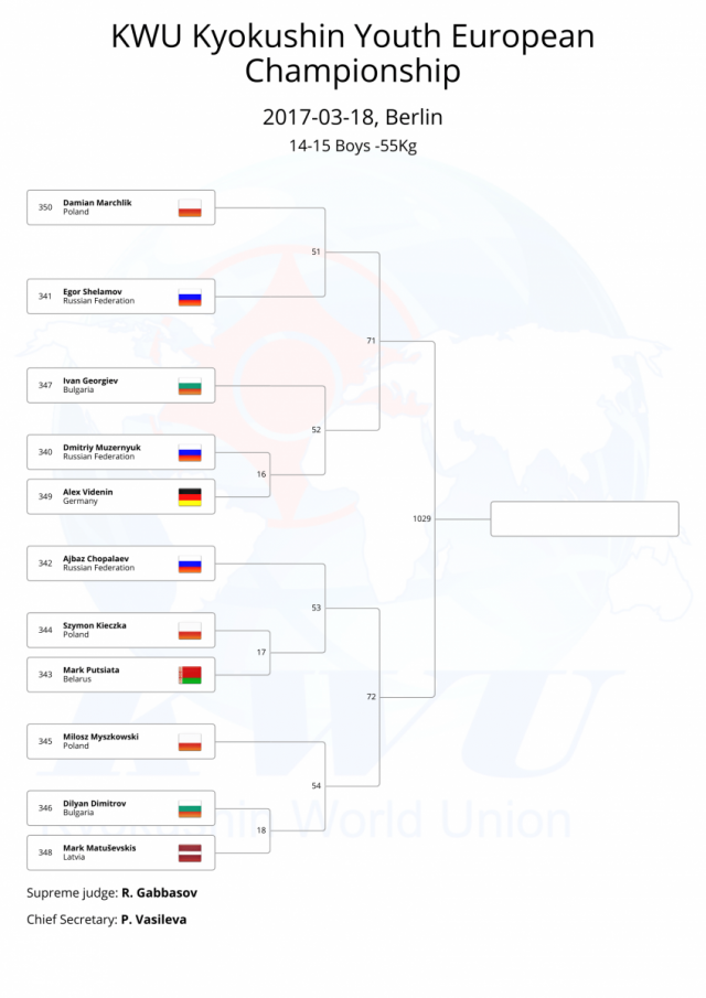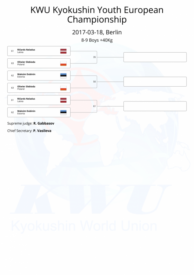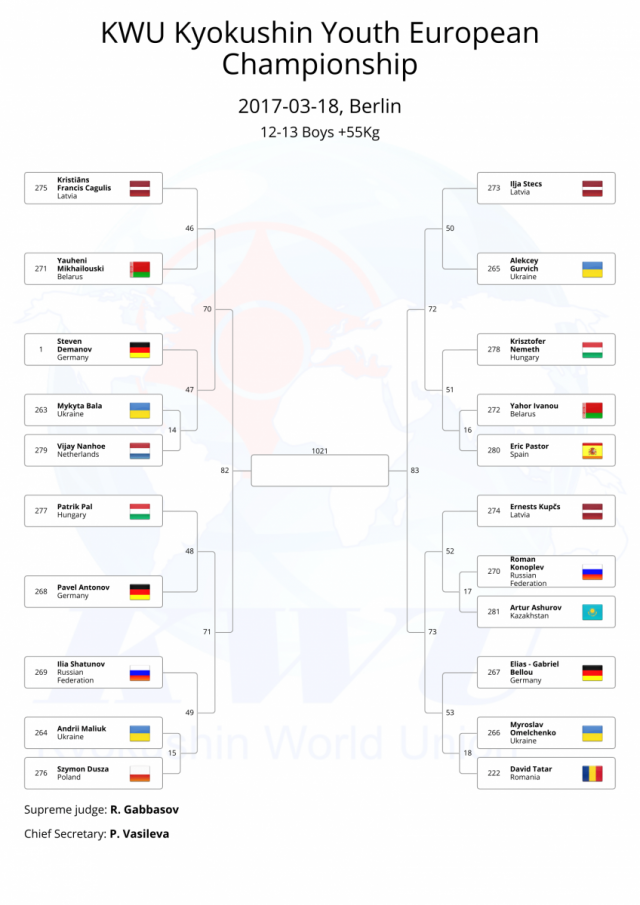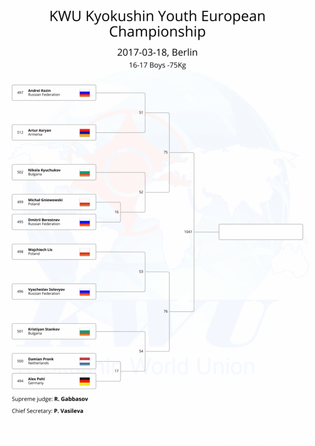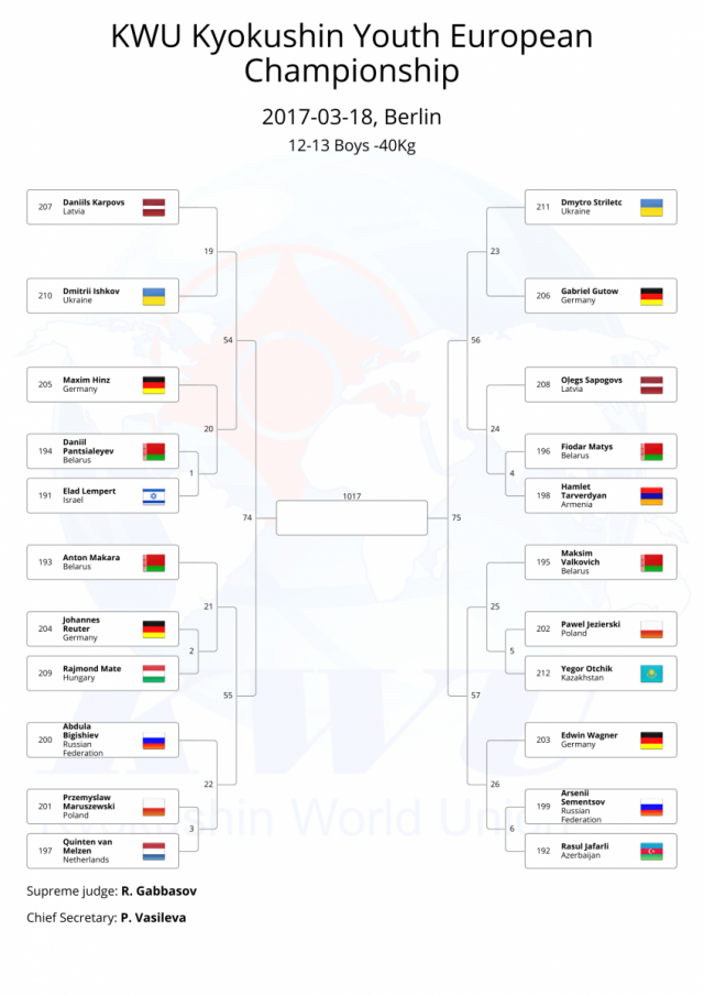 18 марта 2017 года в Берлине, Германия, пройдет Первенство Европы KWU среди детей, юношей и юниоров (European championship KWU for Children and Youth). В турнире примут участие 560 юных бойцов от 8-ми до 17-ти лет из 24 стран.