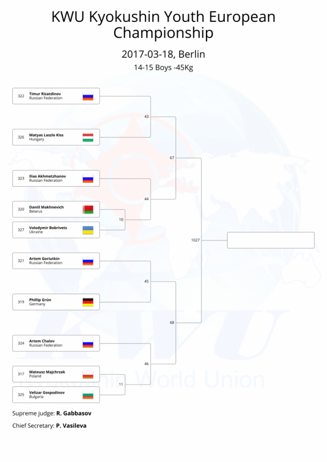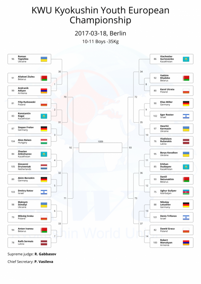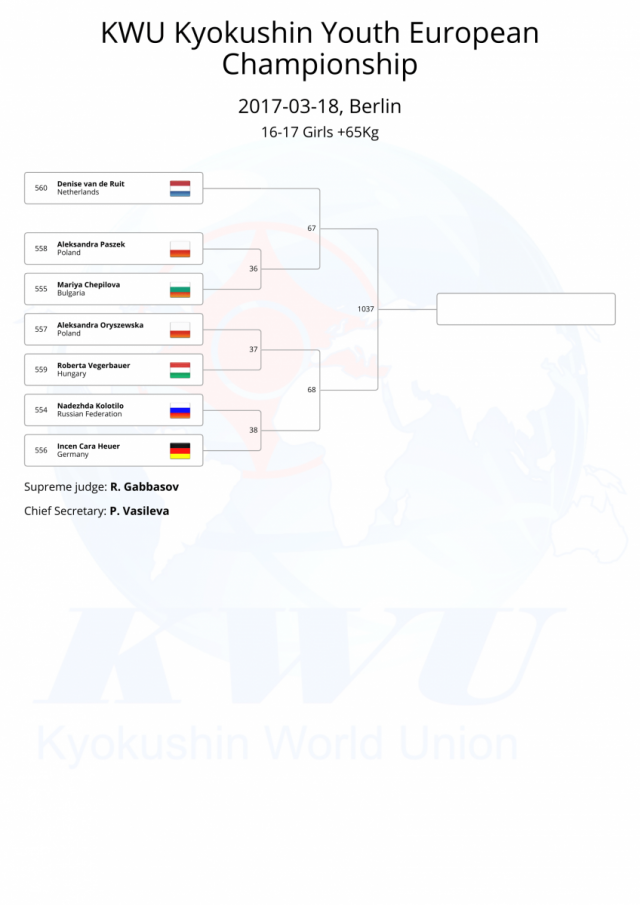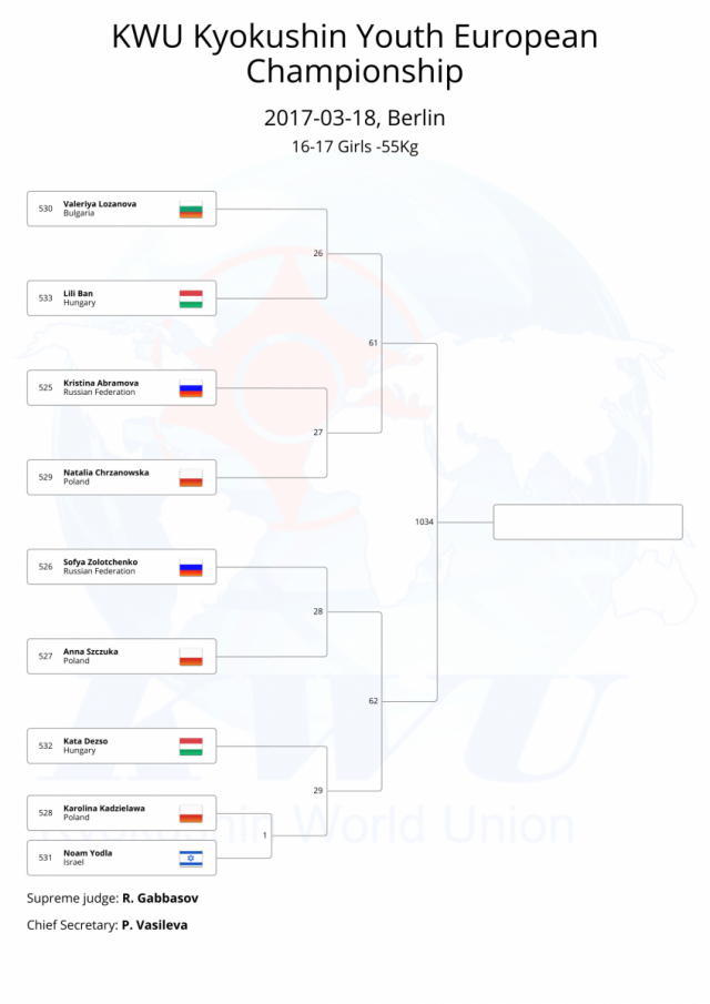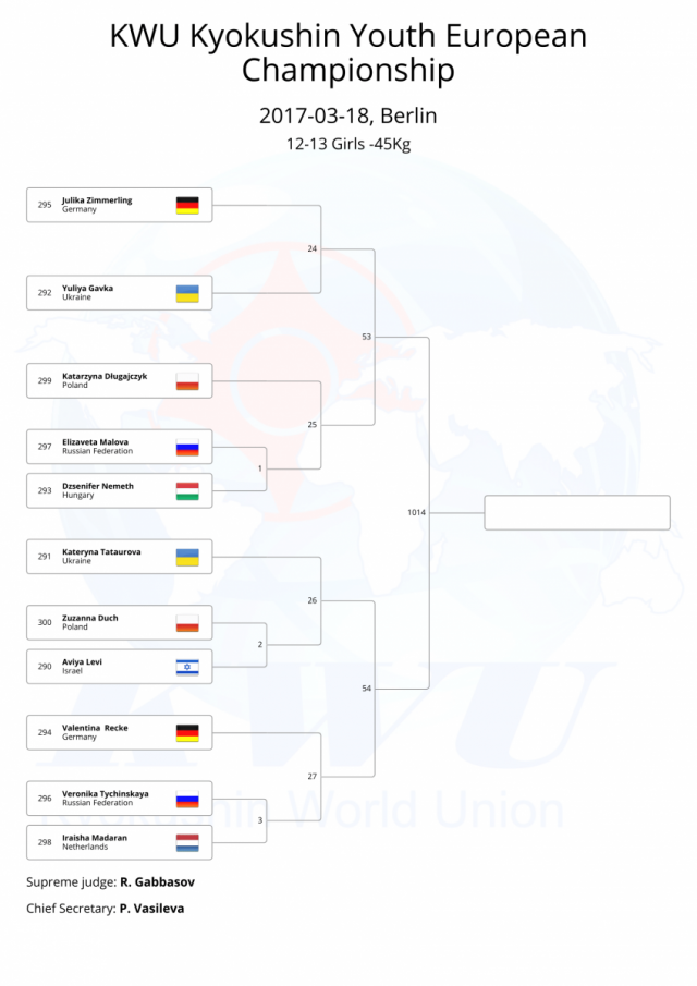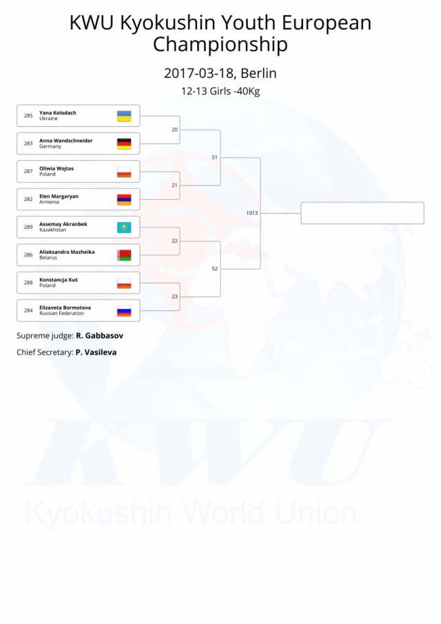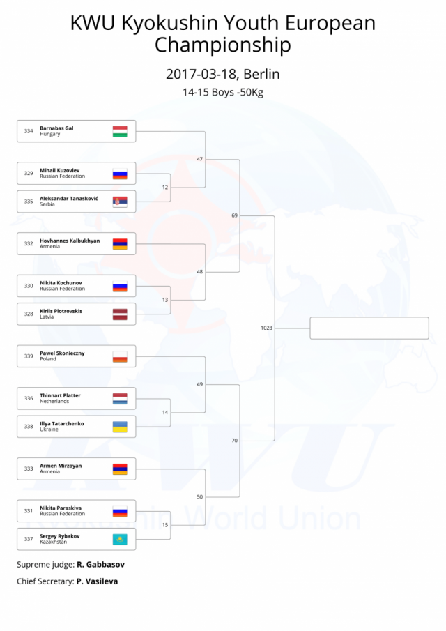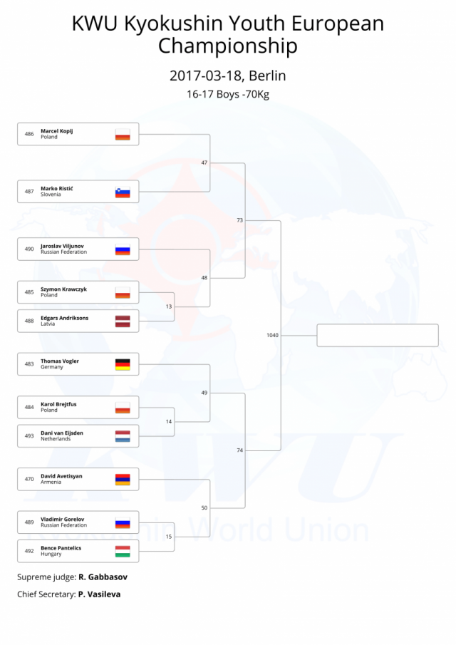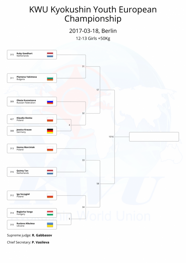 18 марта 2017 года в Берлине, Германия, пройдет Первенство Европы KWU среди детей, юношей и юниоров (European championship KWU for Children and Youth). В турнире примут участие 560 юных бойцов от 8-ми до 17-ти лет из 24 стран.