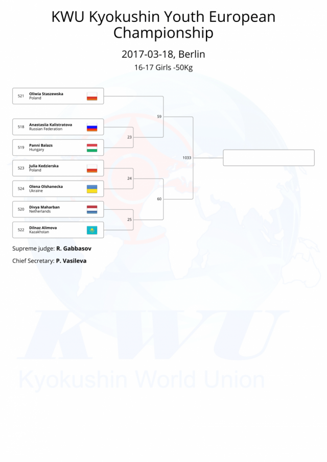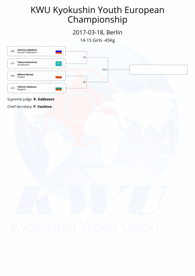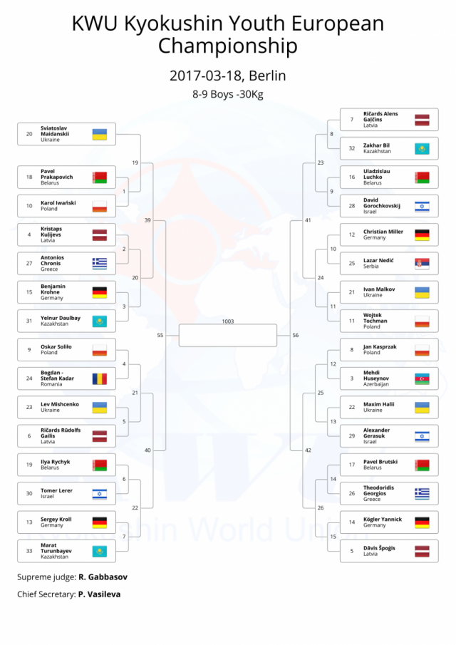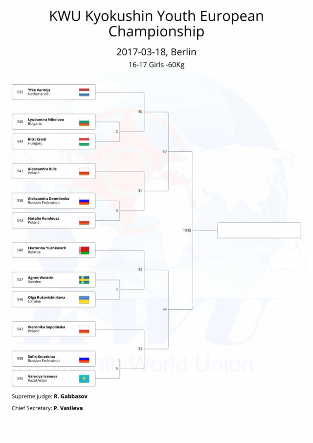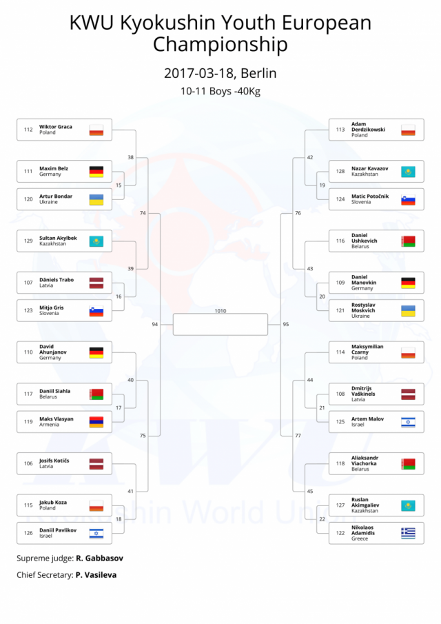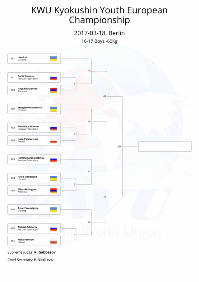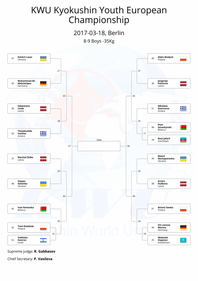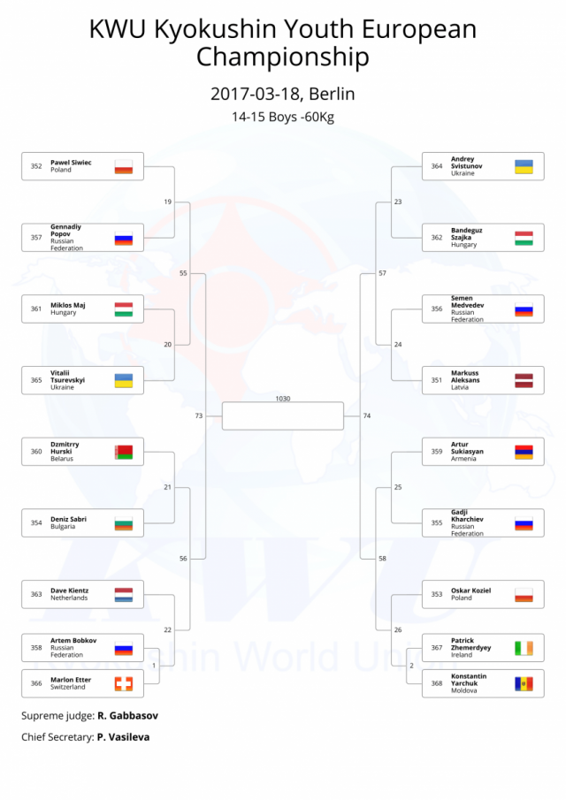 18 марта 2017 года в Берлине, Германия, пройдет Первенство Европы KWU среди детей, юношей и юниоров (European championship KWU for Children and Youth). В турнире примут участие 560 юных бойцов от 8-ми до 17-ти лет из 24 стран.