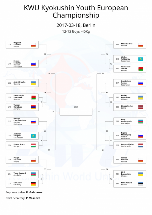 Пули Первенства Европы KWU среди детей, юношей и юниоров