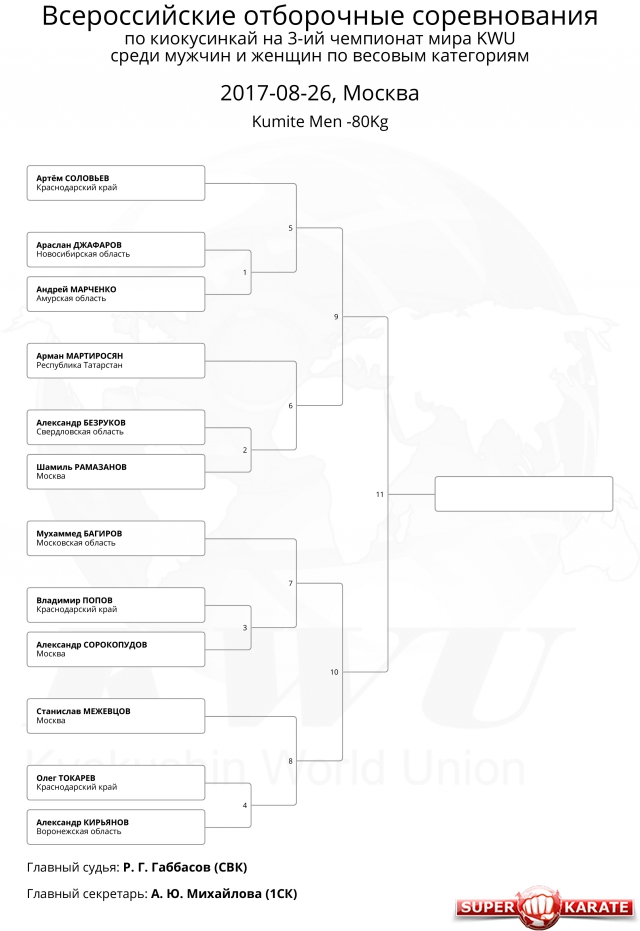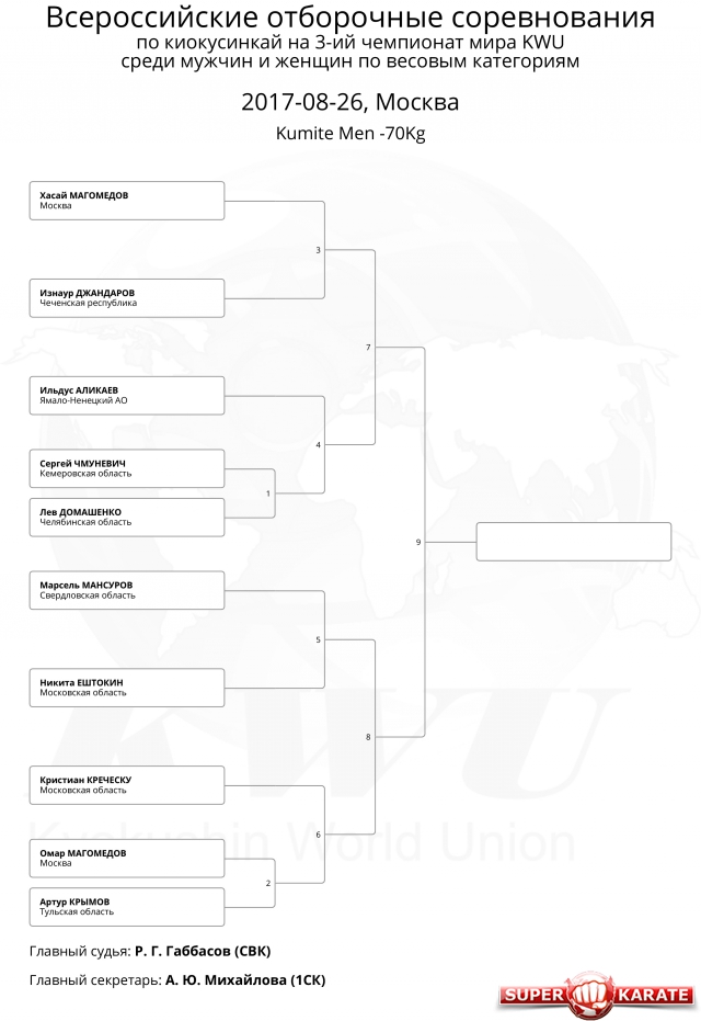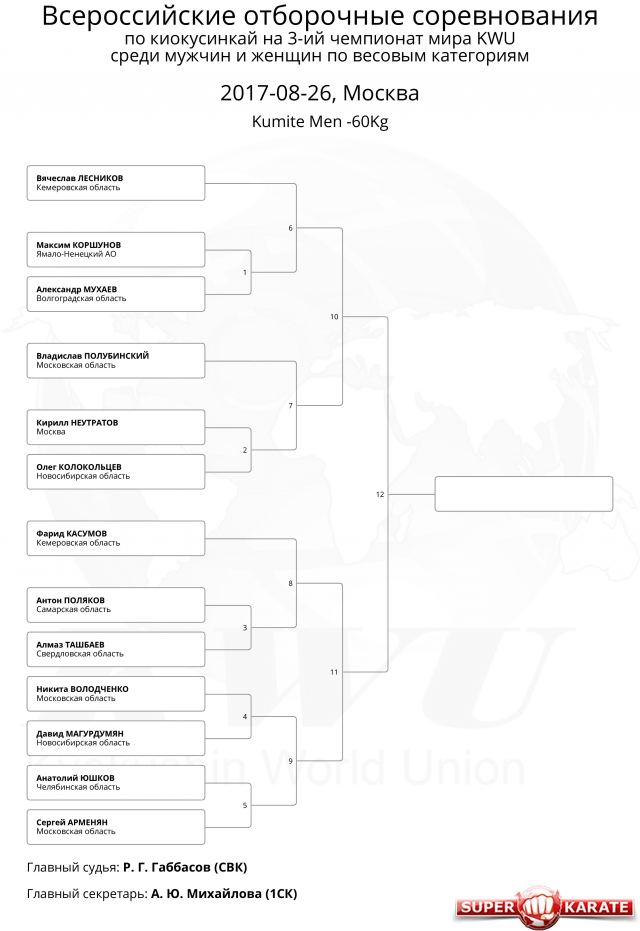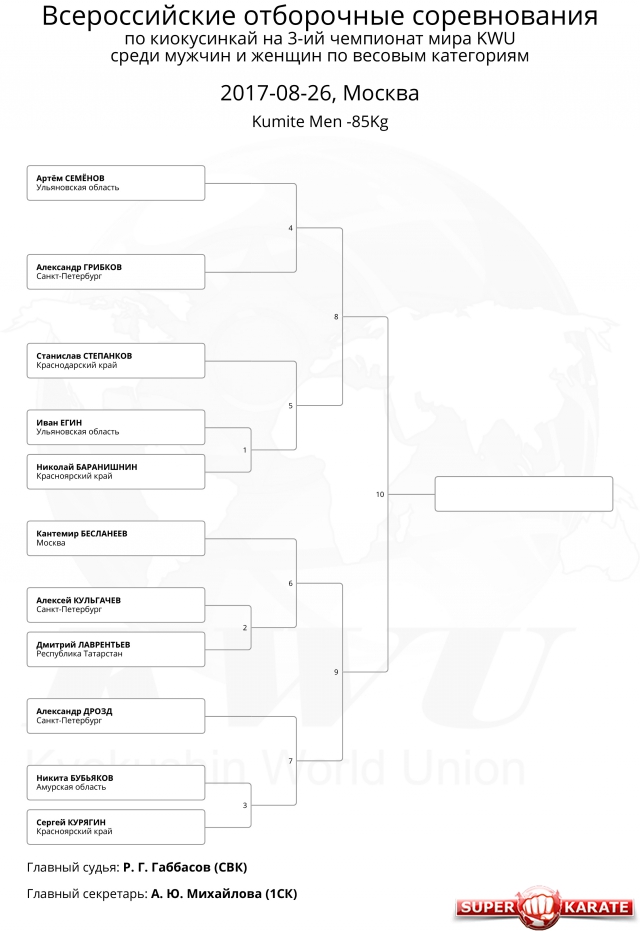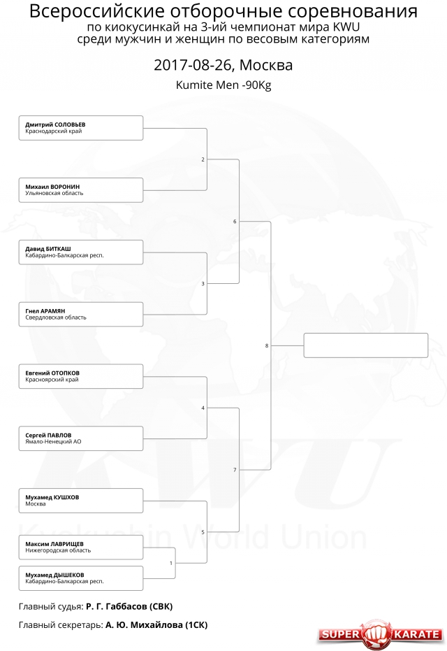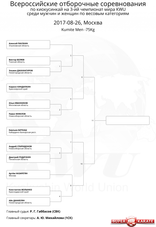 Публикуем официальные пули всероссийского отборочного турнира на 3-й Чемпионат мира KWU, в котором примут участие российские бойцы четырех международных организаций.